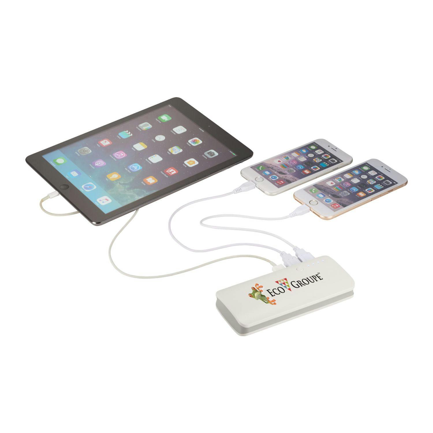 The Spare 10000 mAh Power Bank features a 10,000 mAh/37Wh Grade A Lithium Ion battery, LED indicator lights and a flashlight. Charge up to three devices at once with a max output of 5V/2.1A. Includes a USB-to-Micro-USB connecting cable which can recharge the battery backup or other devices with a Micro-USB input, like Android Smartphones from Samsung®, Motorola®, HTC®, Nokia®, and others. Power banks are permitted in carry-on luggage only, and at the discretion of TSA agents. Please charge the power bank before initial use.