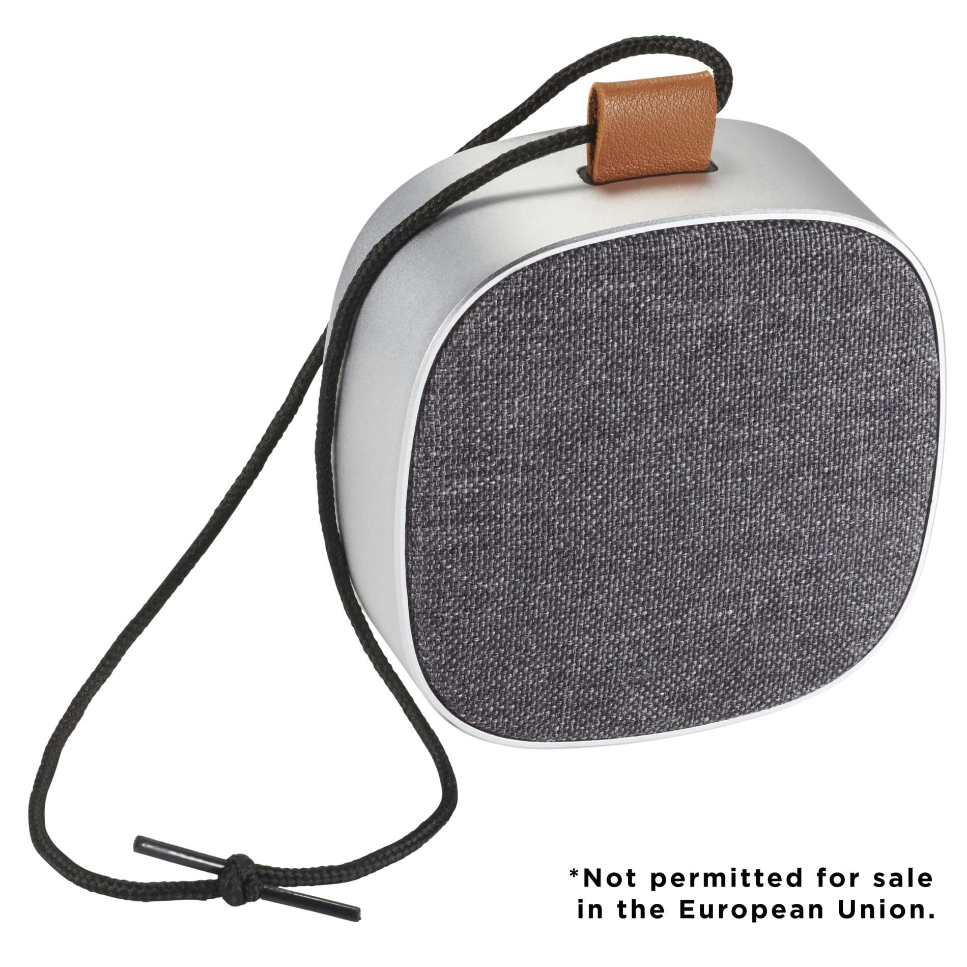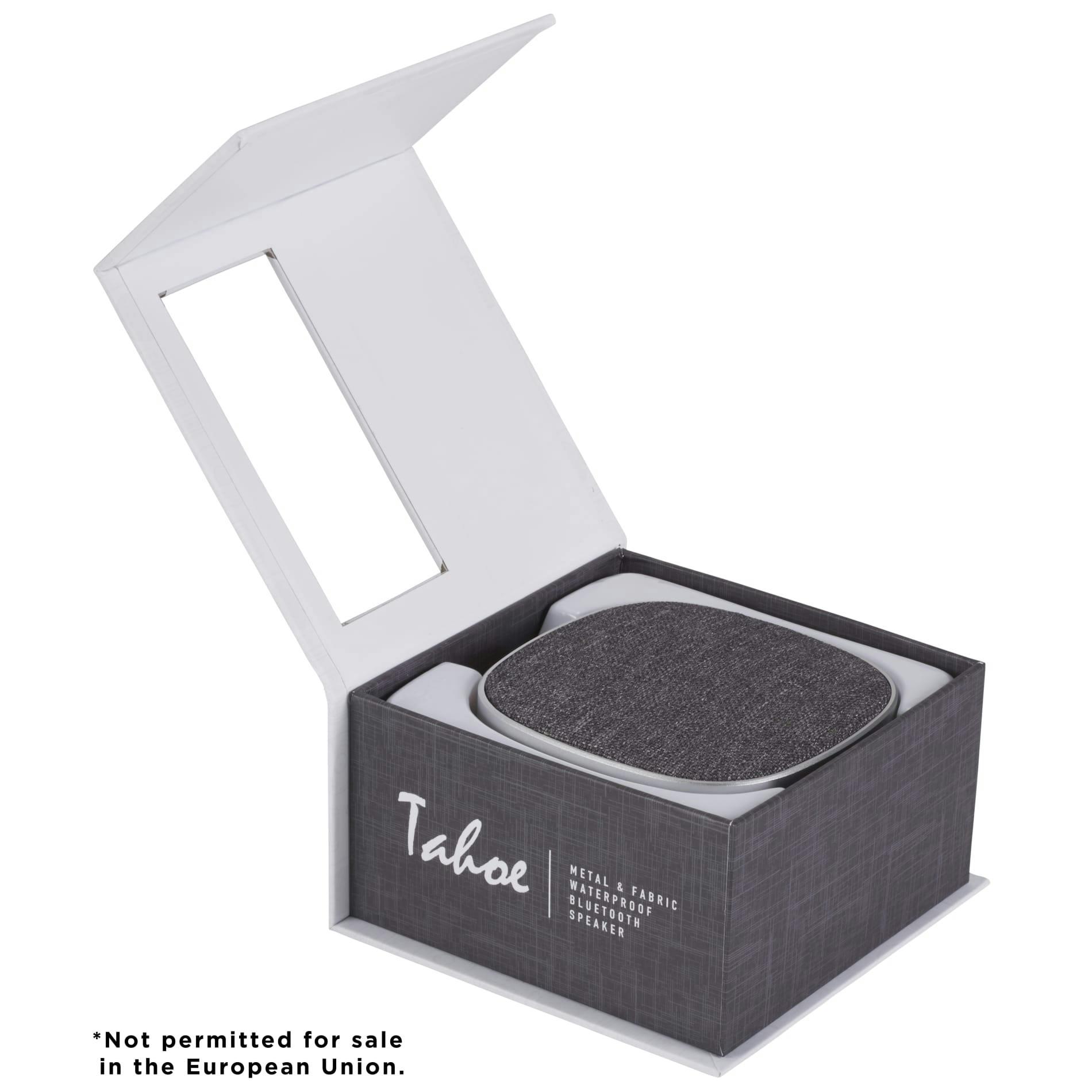 Take fashion with you into the great outdoors! The Tahoe Bluetooth Speaker features a durable metal speaker body with an on trend fashion speaker grill. With an IPX5 Waterproof rating the speaker can withstand any condition. Plus if two speakers are purchased they can be synced to each other to create True Surround Sound. Built in Microphone and Music Controls. Bluetooth Working range is 33ft. Bluetooth Version 4.2. Playback time at max volume 8hrs. Charging time 3hrs. 3 Watt Speaker Output. Sales, Resale's and Distribution of this product to the EU are expressly prohibited.