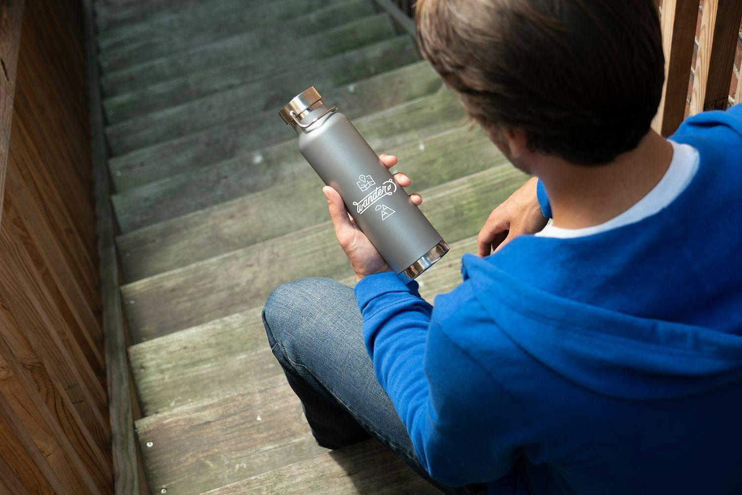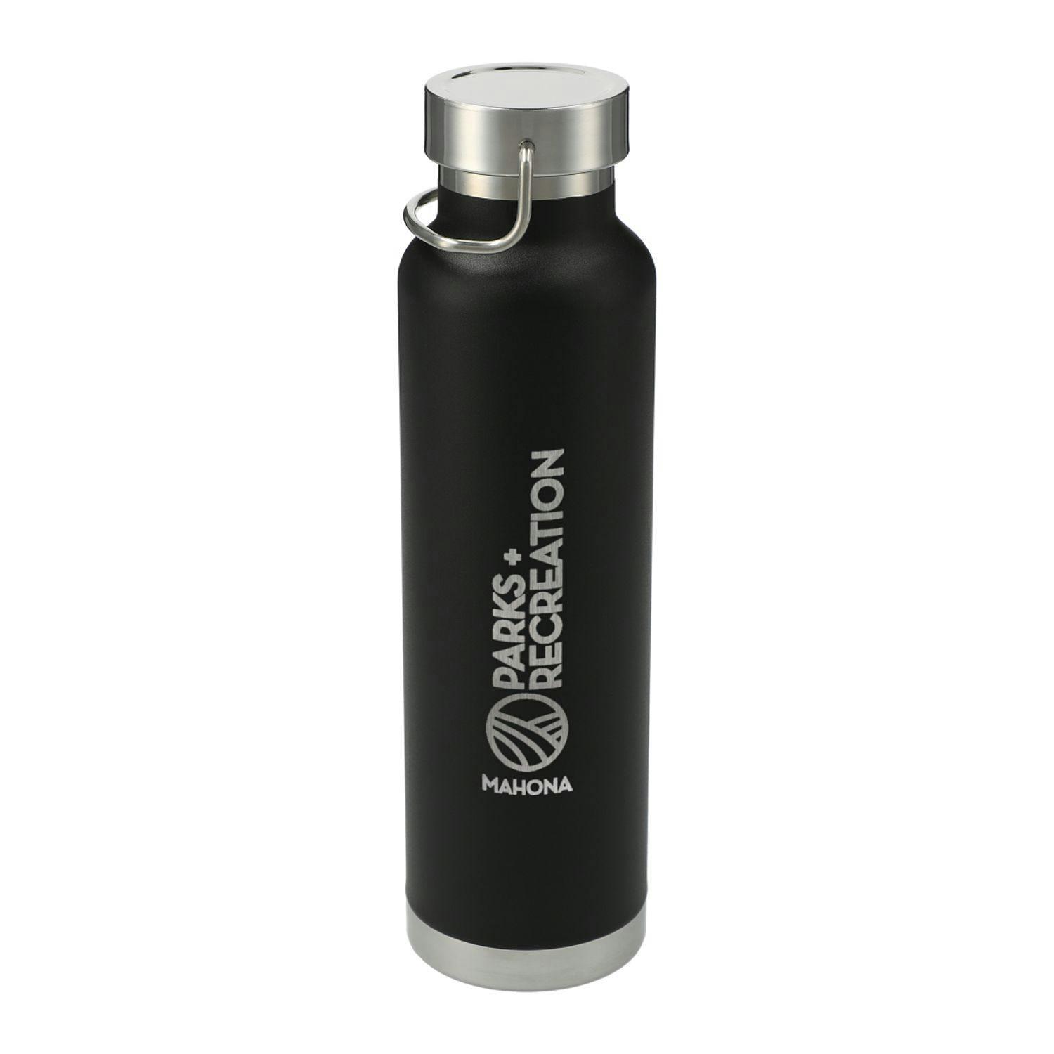 Durable, double-wall stainless steel vacuum construction with copper insulation, which allows your beverage to stay cold for 48 hours and hot for at least 12 hours. The construction also prevents condensation on the outside of the water bottle. On-trend, durable powder coating. Stainless steel screw-on, spill resistant lid with durable stainless steel hand loop. Wide opening for comfortable filling and pouring. Perfect for ice cubes. Fits most standard car cup holders. 22oz.