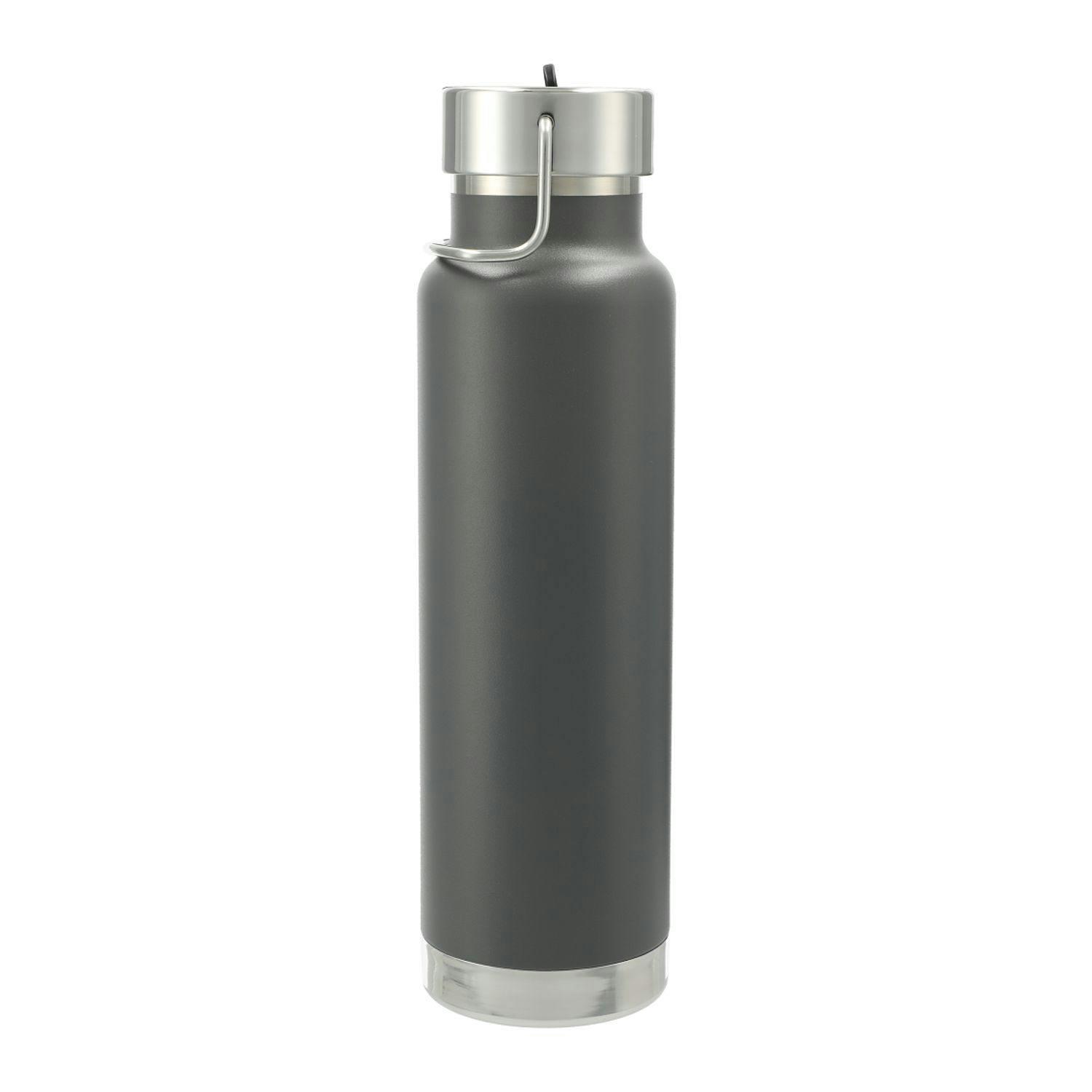 Durable, double-wall stainless steel vacuum construction with copper insulation, which allows your beverage to stay cold for up to 48 hours and hot for at least 12 hours. The construction also prevents condensation on the outside of the water bottle. On-trend, durable powder coating. Stainless steel screw-on, spill resistant lid with integrated straw, and durable stainless steel hand loop. Wide opening for comfortable filling and pouring. Perfect for ice cubes. Fits most standard car cup holders. 25oz.