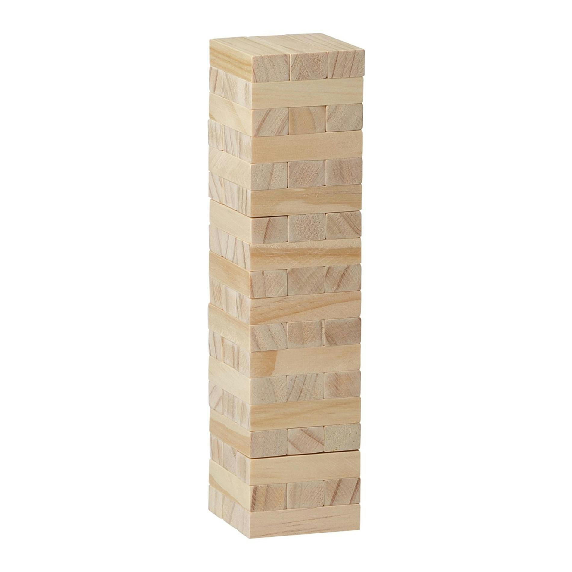 The Tumbling Tower Wood Block Stacking Game is a classic and exciting tabletop game. Take turns testing your steadiness of hand and challenge gravity by pulling out block by block until the tower comes crashing down!