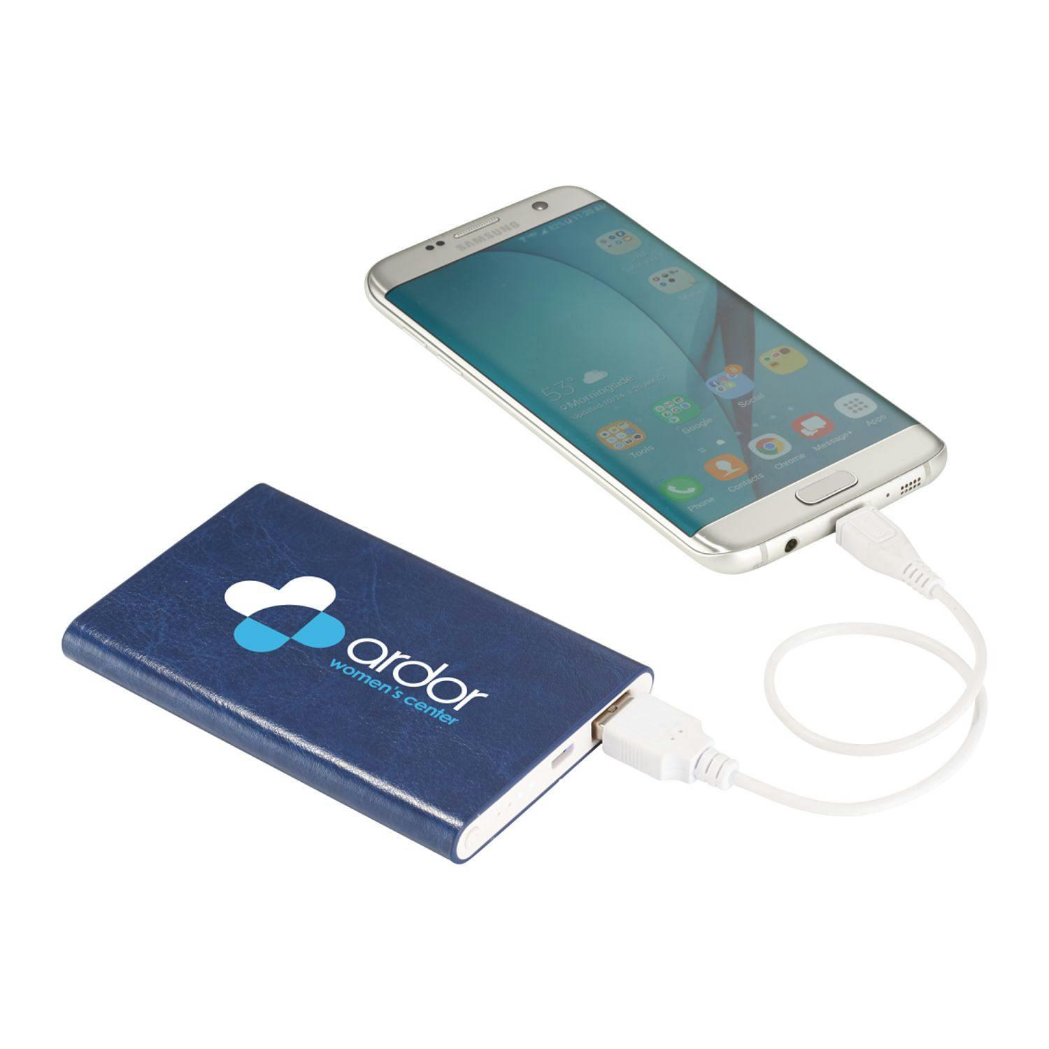 The UL Listed Abruzzo 4,000 mAh Power Bank contains a Lithium Polymer Grade A battery (14.4Wh) and includes a leatherette cover. Input: 5V/1000 mA; Output: 5V/1000 mA. Includes a USB-to-Micro-USB connecting cable which can recharge the battery backup or other devices with a Micro-USB input, like Android Smartphones from Samsung®, Motorola®, HTC®, Nokia®, and others. This product has passed UL standards. Power banks are permitted in carry-on luggage only, and at the discretion of TSA agents. Please charge power bank before initial use.