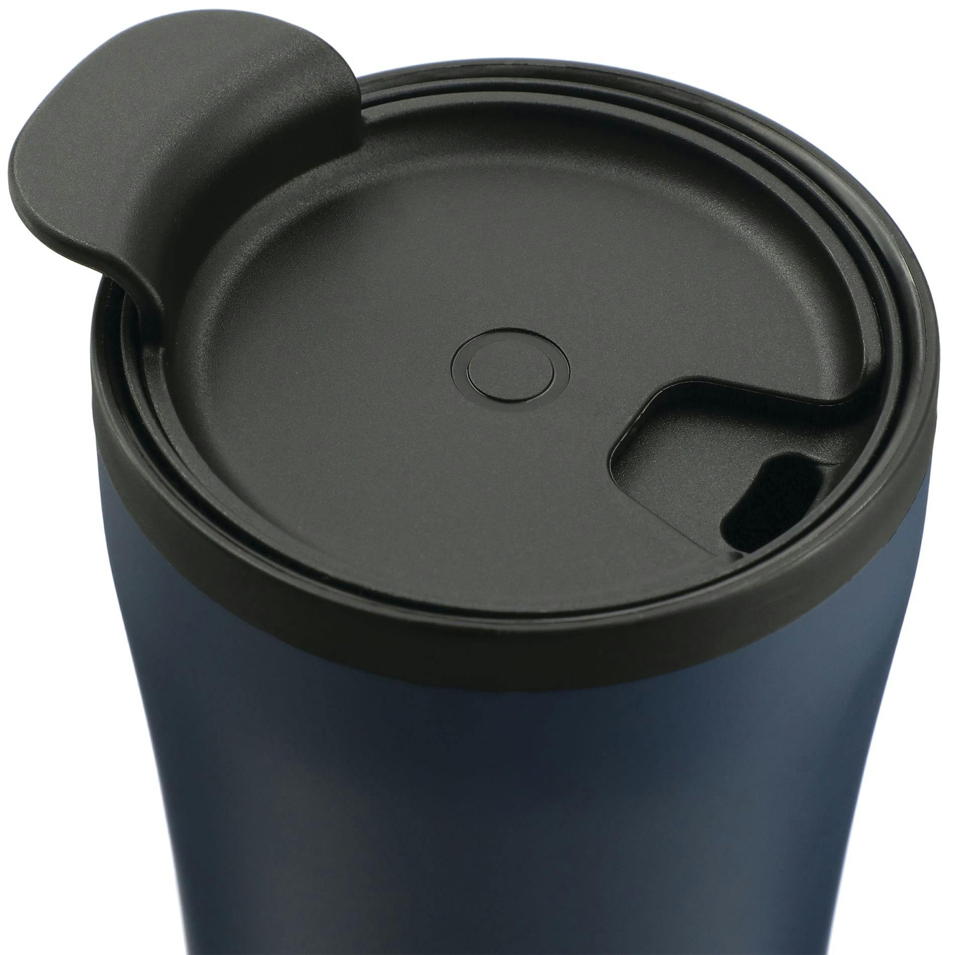 Double-wall construction. Push-on lid with swivel open closure. Hand wash only. Synthetic cork bottom stops skids. Follow any included care guidelines.