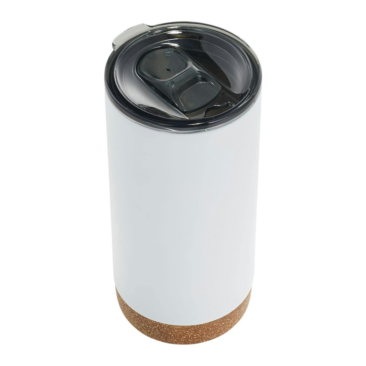 With the skid-proof cork look featured bottom design, your next promotion will be sure to stand out. Durable, double-wall stainless steel vacuum construction with copper insulation, which allows your cold beverage to stay cold for 24 hours and at least 8 hours for hot beverages. The construction also prevents condensation on the outside of the piece. Fits most standard car cup holders. 16oz.