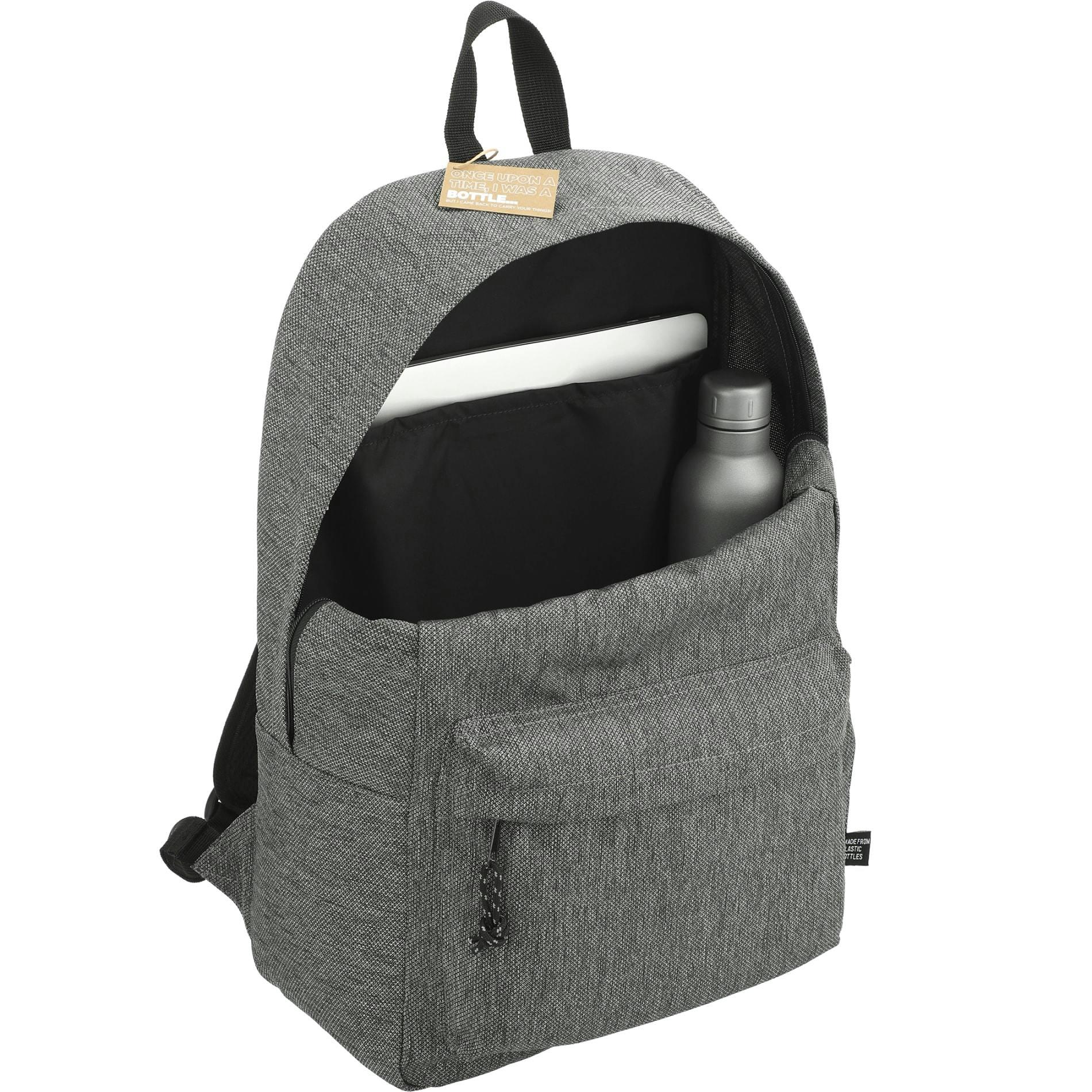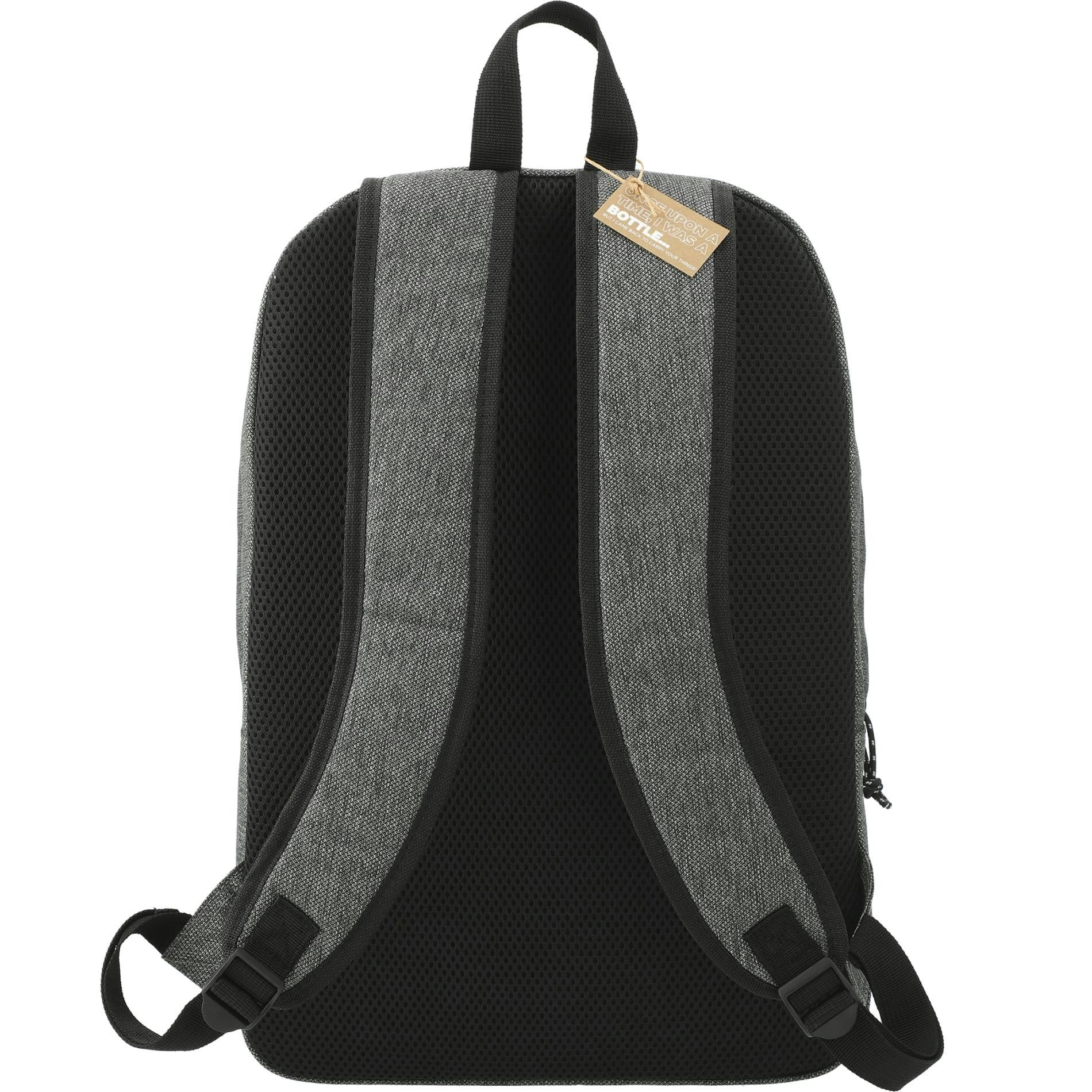 Made from recycled RPET, the Vila Recycled 15" Computer Backpack pairs eco-friendly materials with a sleek, durable design—ideal for commuting, campus life, or promotional events. The zippered main compartment includes a padded sleeve for most 15-inch laptops, while the front zip pocket and included accessory pouch keep chargers, phones, and pens organized. Carry via padded, adjustable shoulder straps or the top grab handle—an attractive, sustainable laptop backpack built for everyday use and branding.