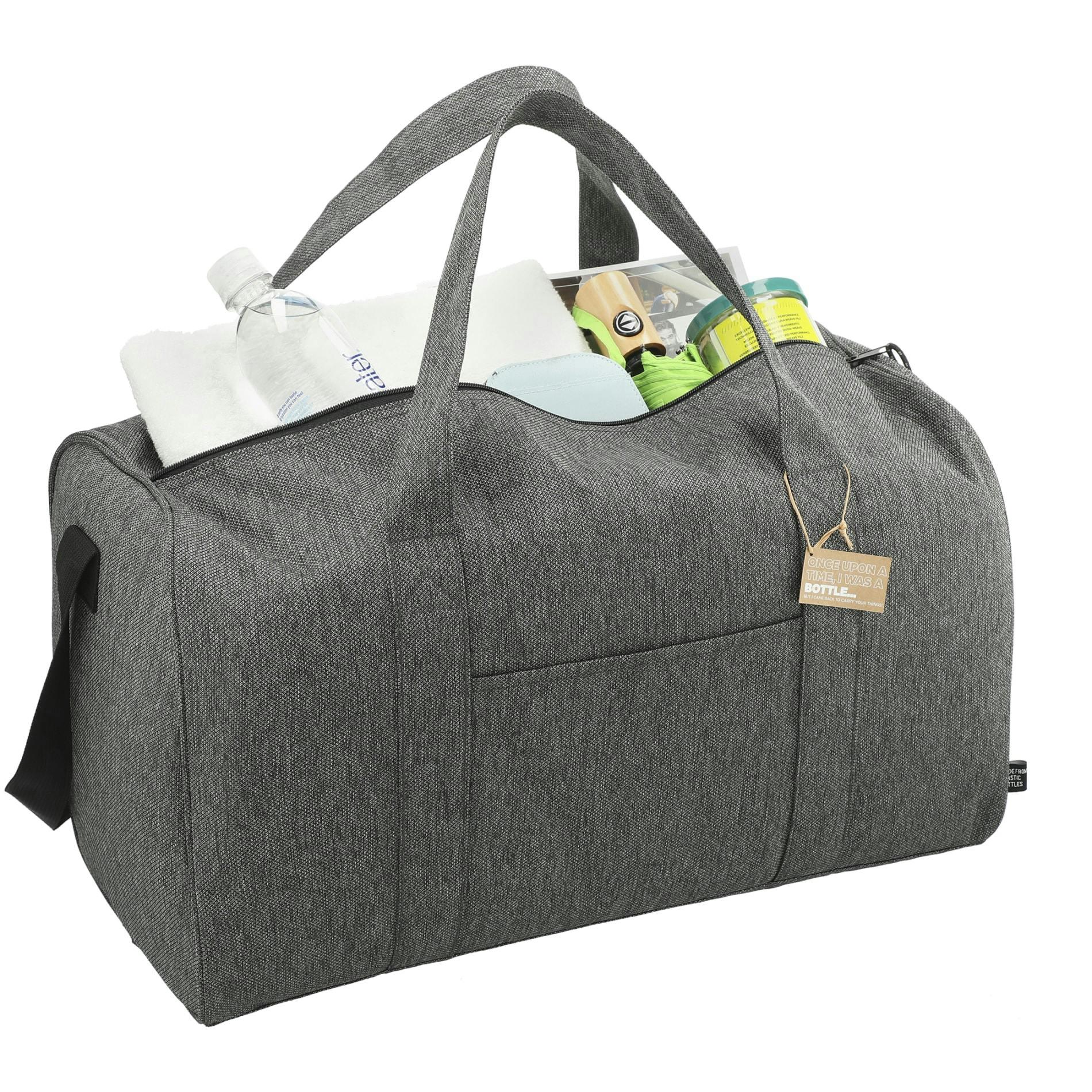 The Vila Recycled Executive Duffel features a roomy, zippered main compartment and a front slash pocket. Carry this RPET duffel using either the top grab handles or the adjustable shoulder strap. Through a partnership with 1% For The Planet, one percent of sales of all EcoSmart® products are donated to environmental nonprofits.
