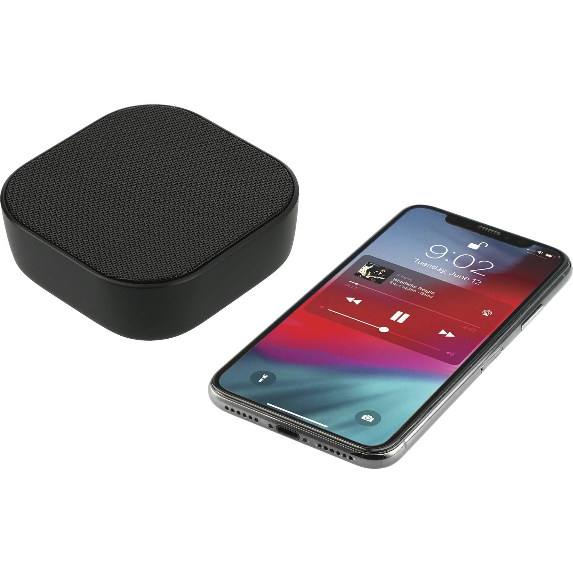 The Whammo 2.0 Bluetooth® Speaker packs quality sound into a compact size. The battery lasts up to four hours at max volume, and it can be fully charged in three hours. The built-in microphone and music controls lets you make or receive calls while controlling the audio. The Bluetooth® working range is 10 meters (33 feet). Includes Type-C charging cable. Three-watt speaker output. Giftbox and manual are made from FSC®-certified material.