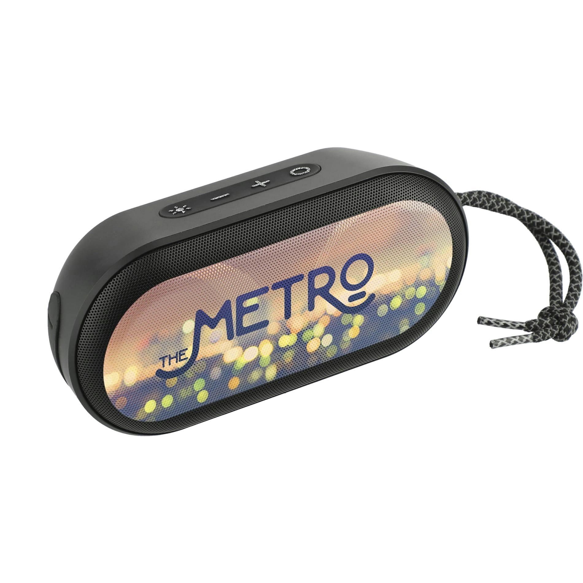 The Zedd Outdoor Waterproof Bluetooth Speaker with RGB Lights will rock along with you inside or out! The Zedd has an IPX6 Waterproof rating, meaning it can withstand rainstorms or splashes of water without damaging the speaker. The 5-Watt Bluetooth® speaker that will produces music that can be heard or inside or outside. Built around the speaker drivers are RGB (Red,Green,Blue) lights that can be adjusted to your preference. The speaker features built-in music controls and a microphone. A 50cm USB-A-to-Type-C charging cable is included. Playback time at max volume: Up to 7.5hrs. Charge time: 2.5hrs.