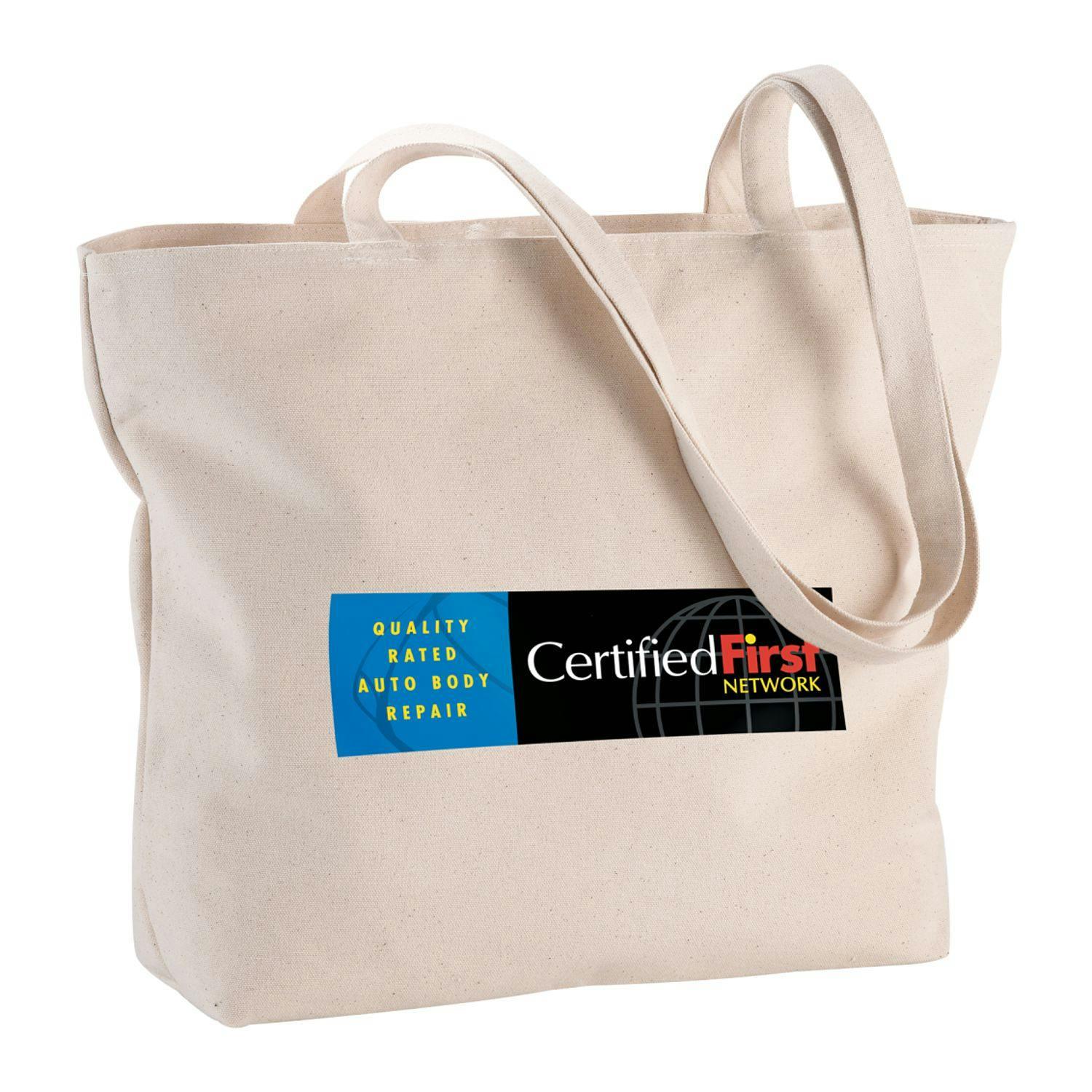 Clean design gives this tote large imprint areas and is a great option for meetings, conventions and tradeshows. Also, a perfect alternative to plastic bags. Zippered main compartment. 13.75" handle drop height.
