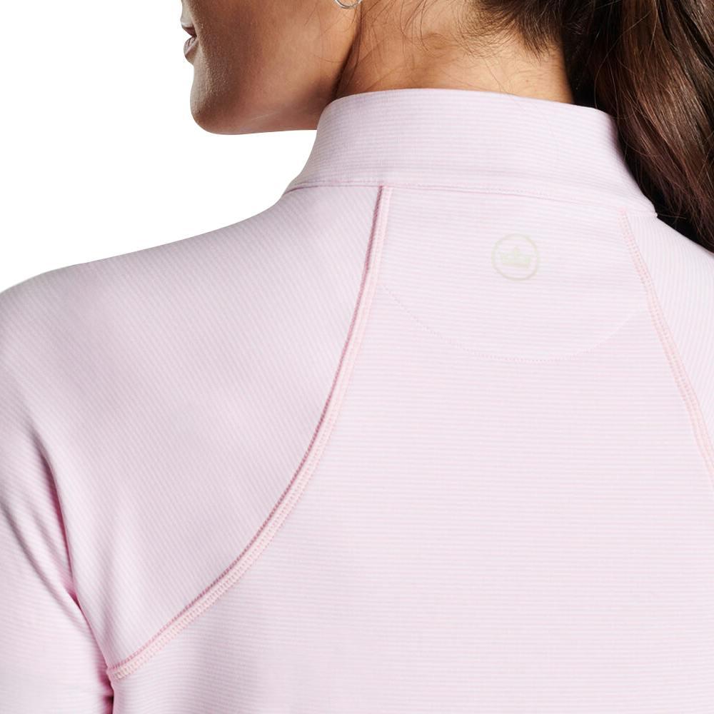 A lightweight, performance-ready women's quarter-zip pullover from Peter Millar, the Sugar Stripe Raglan Perth Quarter-Zip is the perfect second layer for golf, travel, and everyday wear. Built from stretch jersey with four-way stretch, moisture-wicking and antimicrobial finishes, it moves with you, fights odor, and keeps you cool and protected with UPF 50+ sun protection. The mock collar and quarter-zip closure give easy temperature control, and the easy-care fabric is machine washable for low-maintenance style. *Customization is subject to approval from Peter Millar*