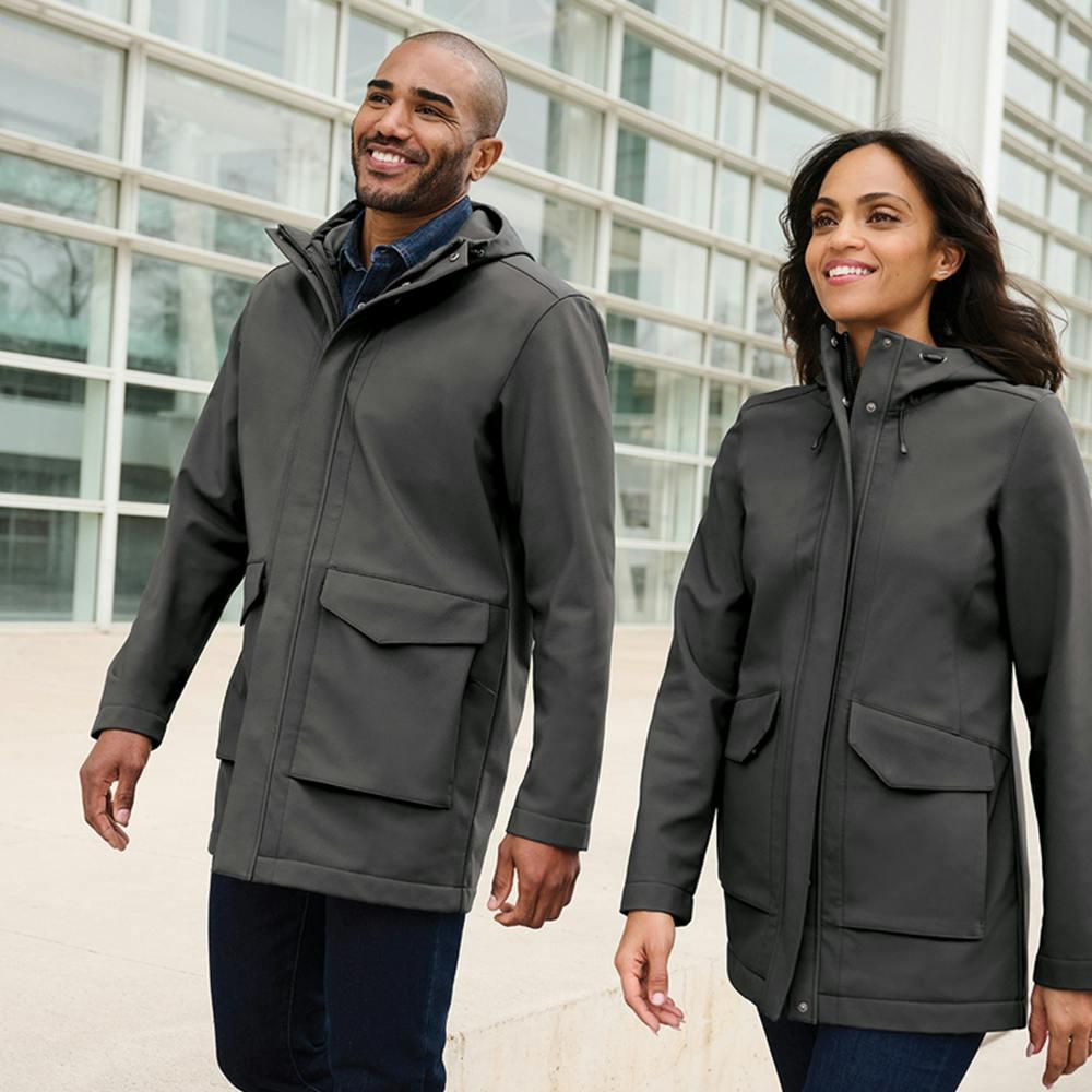 This Port Authority® Collective Outer Soft Shell Parka is a versatile 3-in-1 system designed for optimal functionality. Crafted with a durable polyester/spandex woven mini ripstop shell, it boasts an exceptional waterproof and breathability fabric rating for superior weather protection. The slightly longer length, adjustable hood, and full-length storm flaps enhance its performance in challenging conditions. This parka is part of the Collective system, offering snap attachments to integrate seamlessly with other Collective styles. Elevate your outerwear with this modern, weather-resistant parka designed for both style and function. Create your own with artwork or logo!