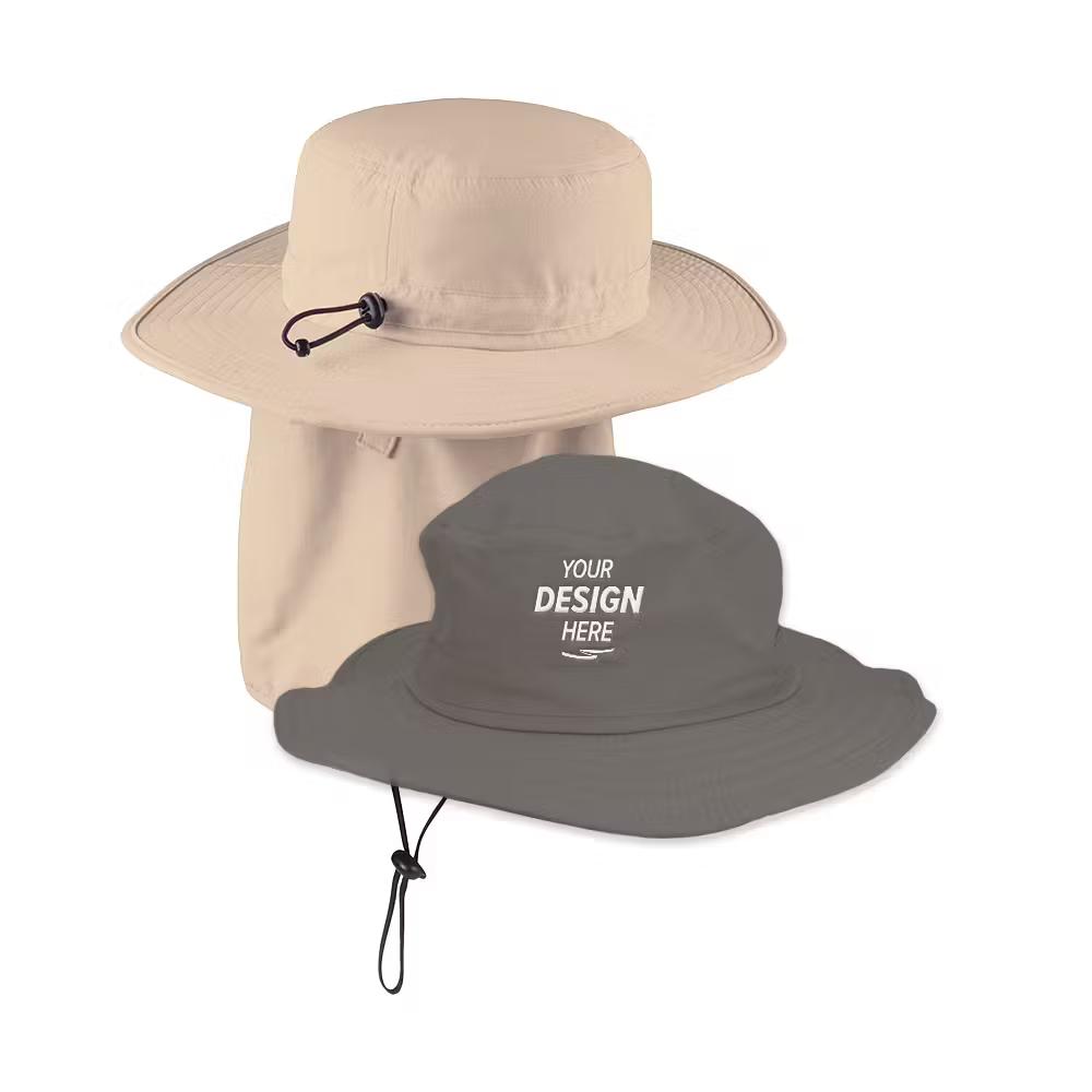 Trail-ready and floatable, the Port Authority Outdoor Wide‑Brim Bucket Hat keeps you comfortable and protected with No Fly Zone® insect repellent, UPF 30+ sun protection and a concealable sun flap—perfect for hiking, fishing, boating or camping. Durable 75/25 polyester/nylon ripstop with an adjustable crown cord, clip-on drawcord and moisture‑wicking sweatband ensures a secure, dry fit while the foam brim keeps the hat afloat.