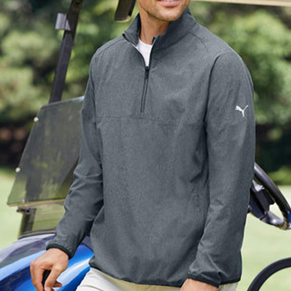 This Puma Coastal Woven Quarter-Zip is made with moisture-wicking 4-way stretch fabric. The lightweight, breathable construction keeps you cool and comfortable on or off the course. The front zippered hand pockets are a convenient place to store your phone, keys, or other essentials. The contrast binding and "Enjoy Golf" printed on the back neck inside the collar add a touch of style. This quarter zip is perfect for any golfer who wants a comfortable, stylish, and functional garment. Add a logo or design and order yours today!