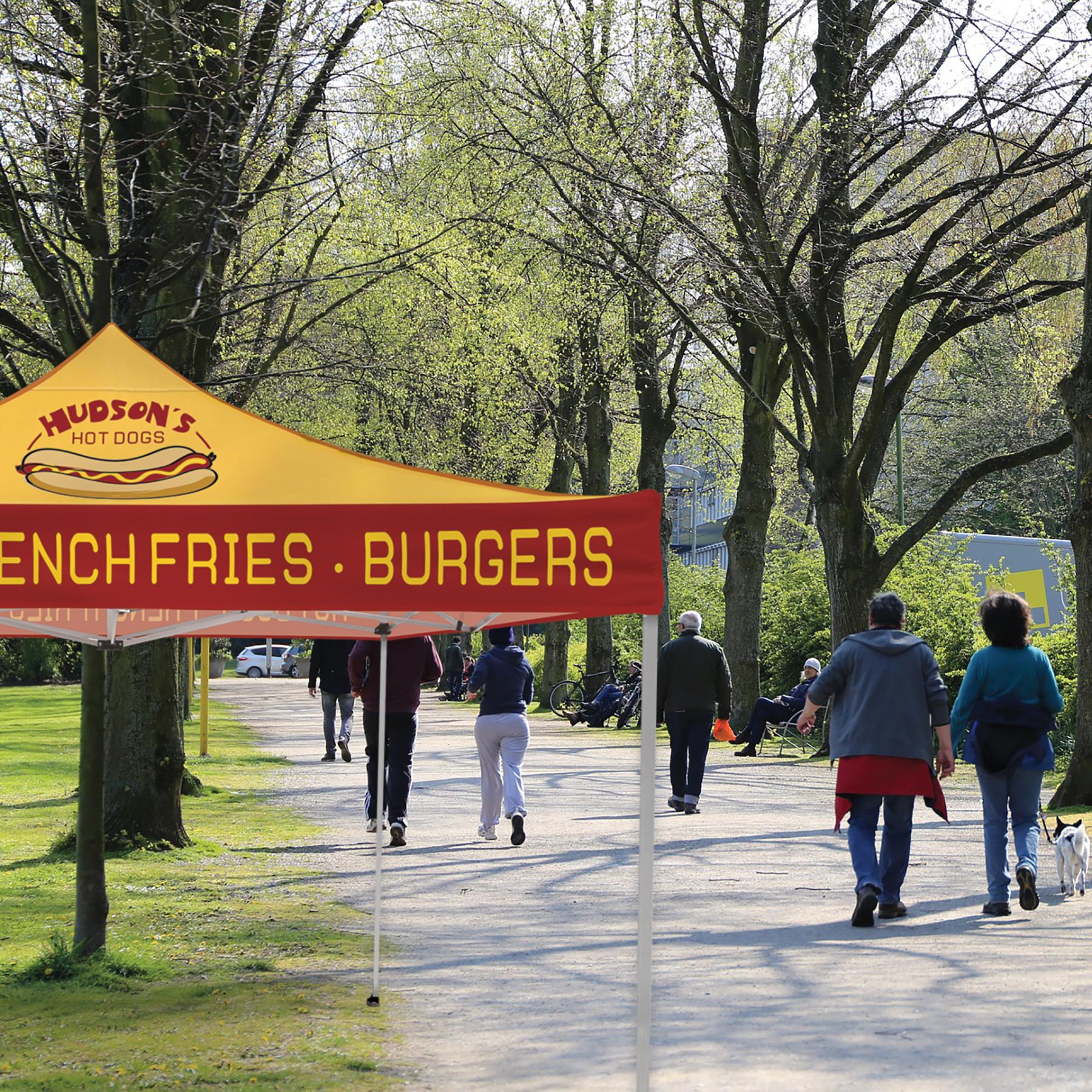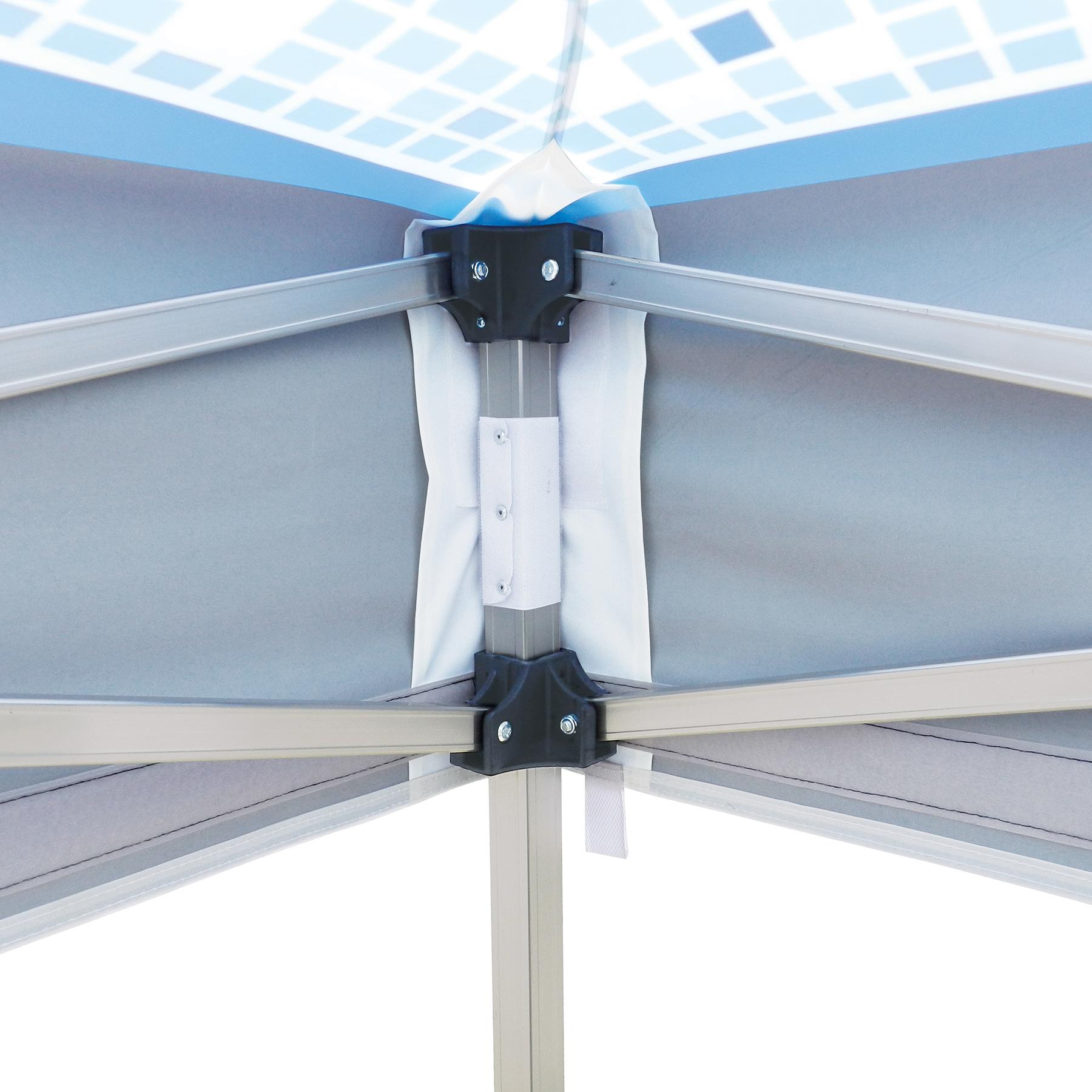 Why buy this 10' Square Canopy Tent from Quinn? Because it offers full color digital printing on all valances and peaks with no additional or set-up charges! Made from 600 denier polyester material, this tent is perfect for trade shows, tailgating, festivals, fairs, fundraising events and more. Includes aluminum pole frame, canopy, stake and rope kit, and carrying case with wheels for easy travel and set-up. Tent kits with wall options available. Weights to secure frame are not included. Shipping quoted upon request.
