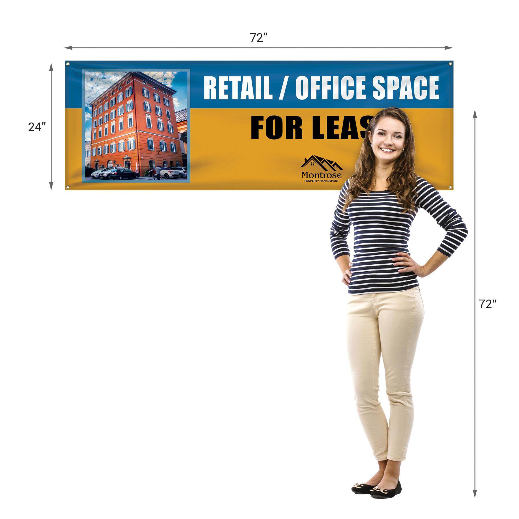 Cover the world in your logo, colors, verbiage, or any form of advertising information you need to spread your message. These beautiful, high quality, knit polyester banners are the perfect large visual sign. Use them for such markets as tradeshows, retail storefronts, sporting and corporate events, and construction or safety announcements. The single reverse banners feature bright full color print, a hemmed edge, and brass grommets in each corner. Please inquire about other finishing options. Prepare to be recognized and catch some attention with your polyester banner!