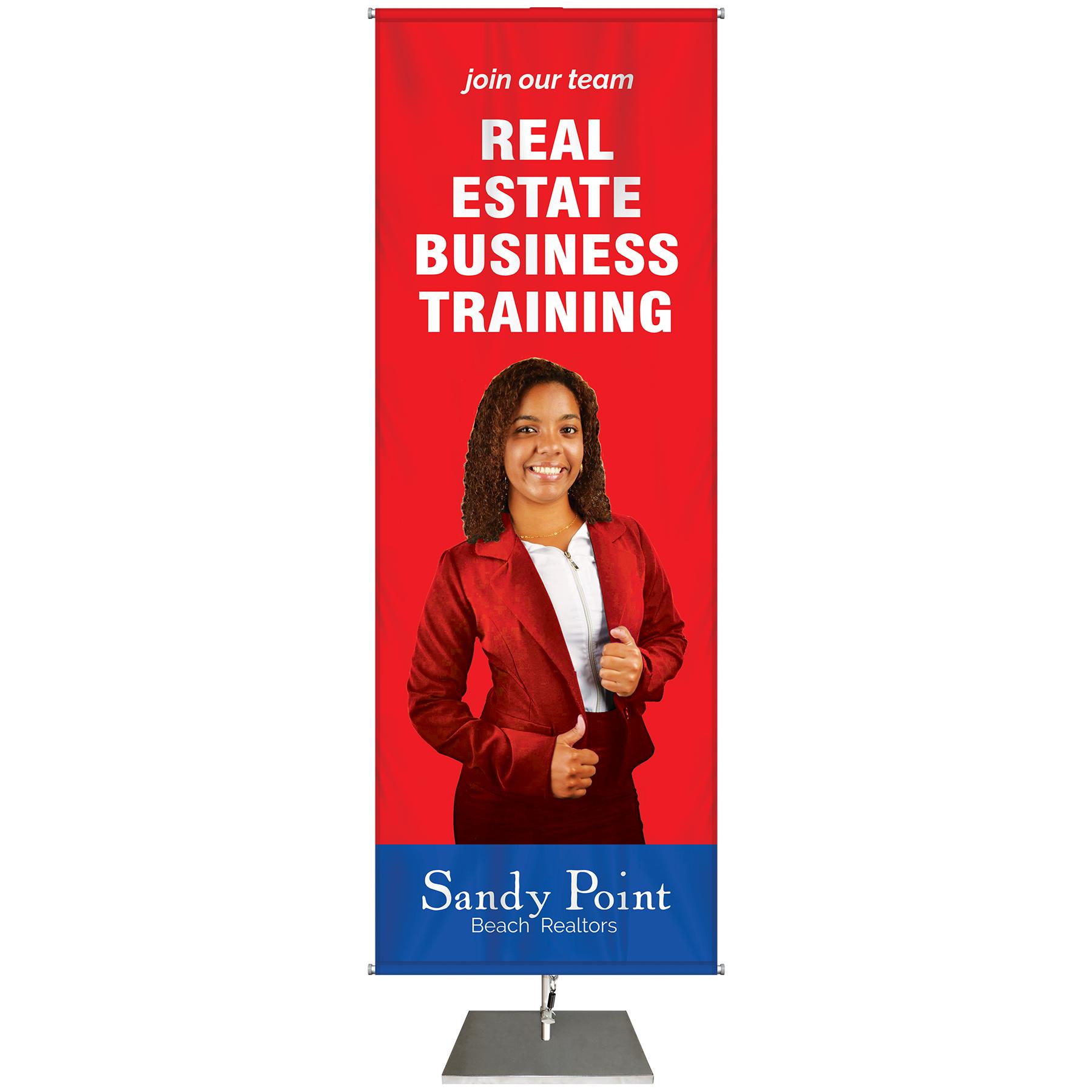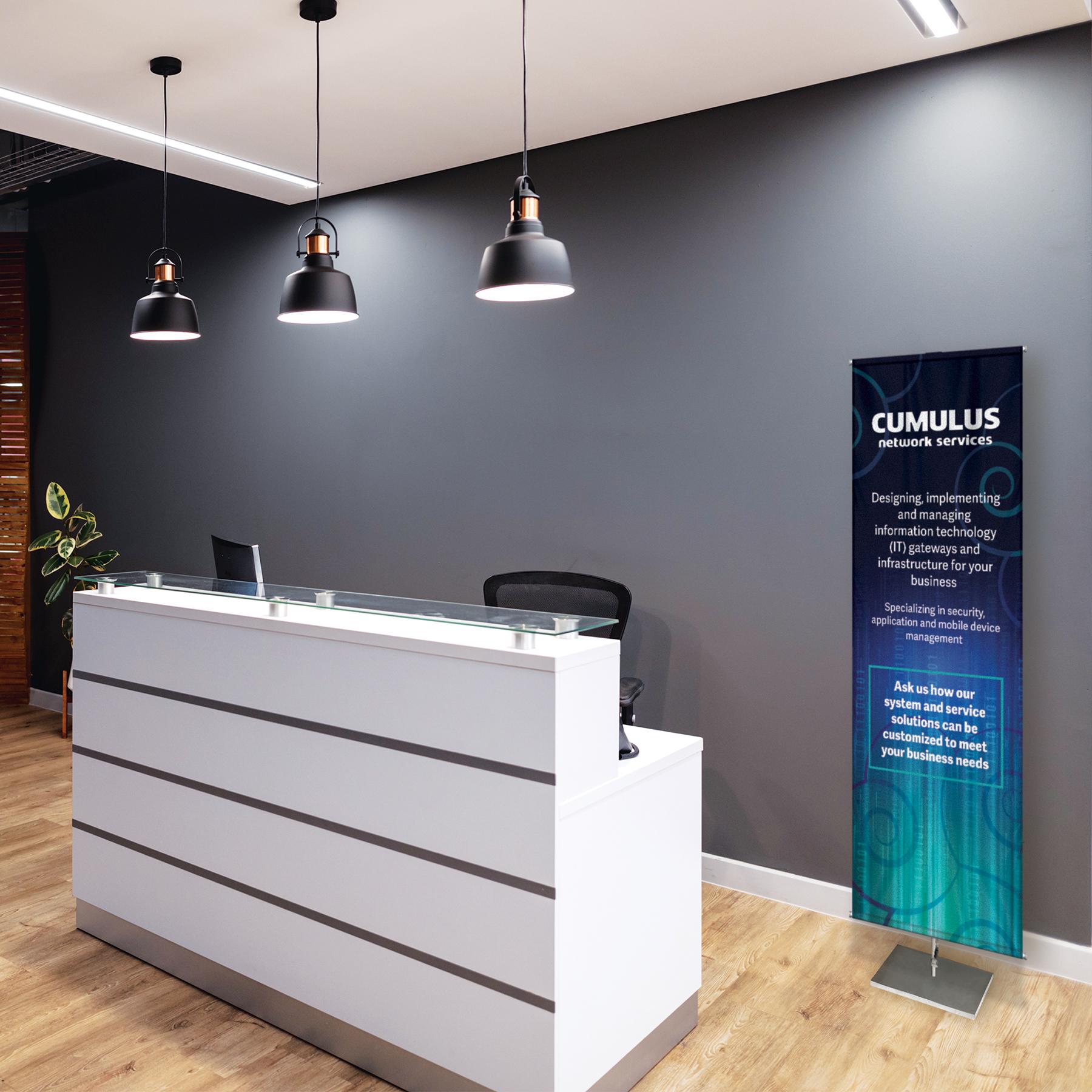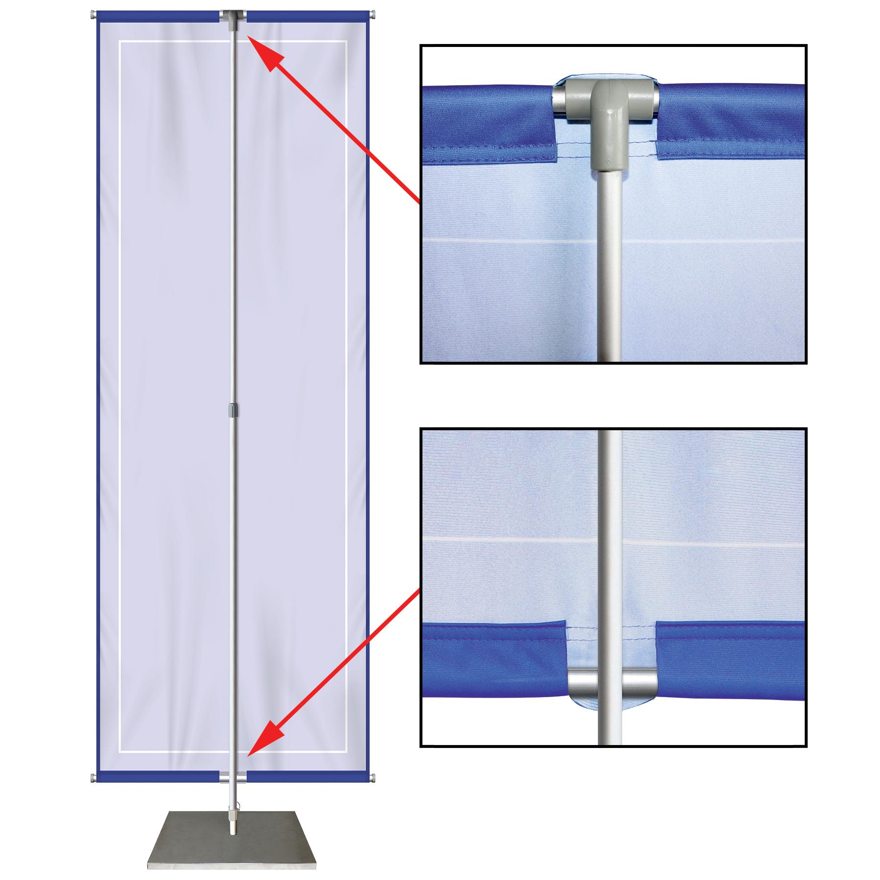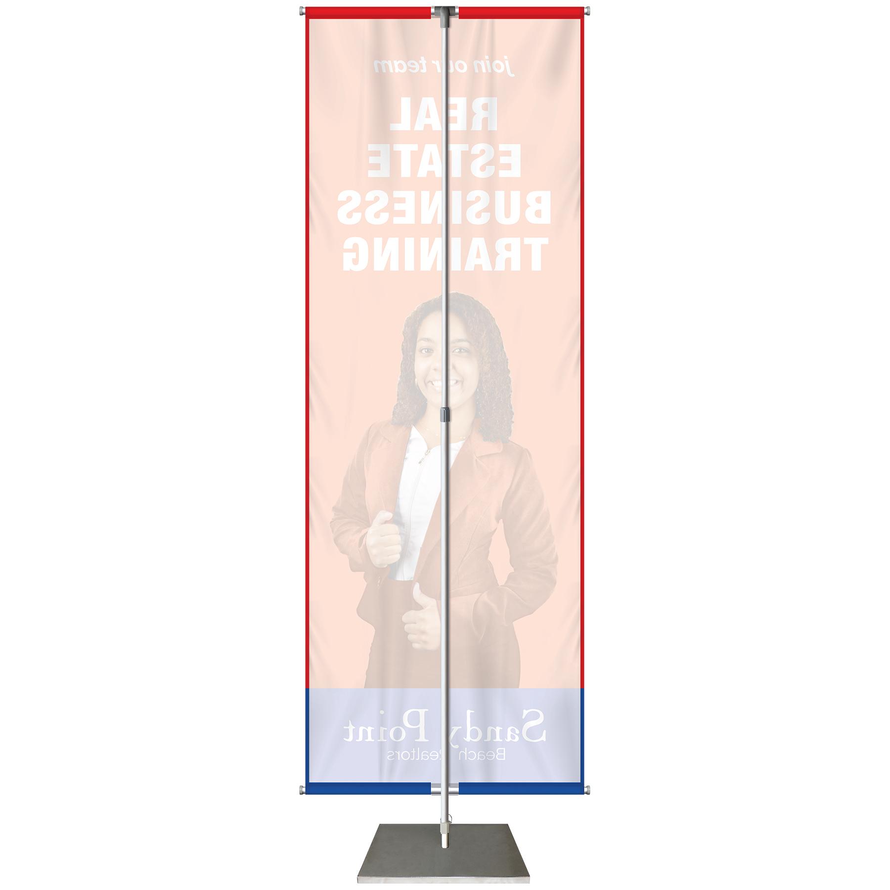 Are you looking for an easy, eye-catching and fast way to grab the attention of your customers? This simple and effective banner display stands 72" high x 24" wide and fills any gap in your visual advertising needs. Custom printed with your artwork in full color on knit polyester, this banner stand offers many possibilities to many markets and industries. The adjustable hardware, that comes with a carry bag, gives opportunity for various sizes of graphics. The graphic provided is the largest recommended size. Unfortunately, due to the solid base's shape it will not fit in the carry bag. Please inquire about other transport options. These banners are a closeout item and will not last.