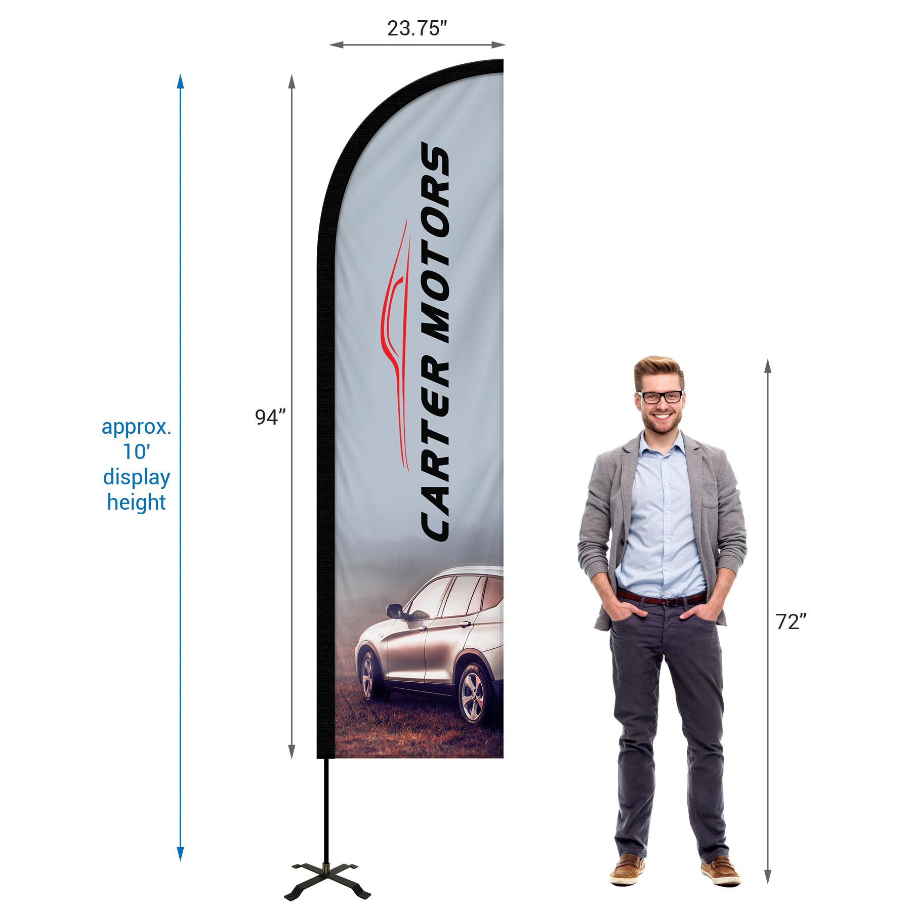 ACTUAL DISPLAY HEIGHT 10' If your brand is looking to maximize exposure a the drop of a hat, then this 8' portable double-sided half drop kit with cross base will do just the trick! Ideal for trade shows, conventions, storefronts and more, this bold banner can be customized with a full-color digital imprint of your company name and logo, and the amount of colors you use or the complexity of your design will not affect the cost. The kit also includes a sectional aluminum/fiberglass pole, carrying case, ground spike and metal cross base for displaying it on hard surfaces.