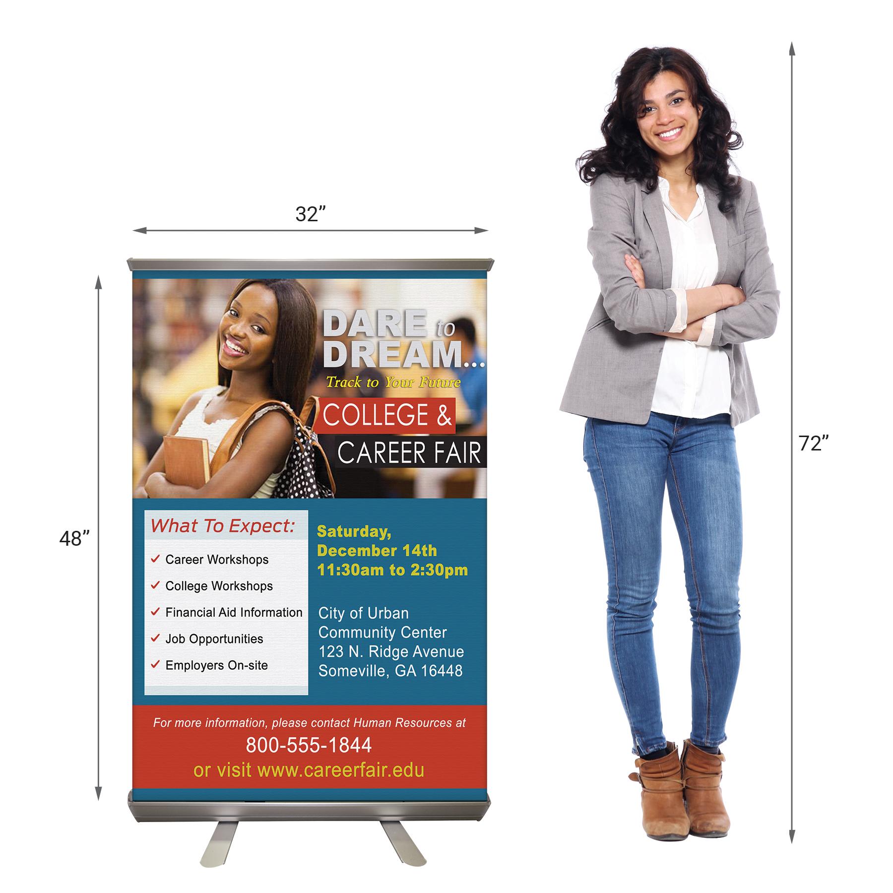 Make your message unmissable with the 32" × 48" Custom Retractable Banner Stand—a polished, professional display built for fast setup and standout impact. The satin silver aluminum frame pairs with a durable 200g polyester banner for long-lasting use at trade shows, conferences, pop-ups, and retail spaces. Its telescopic pole adjusts in seconds without tools, while vibrant full-color printing and free PMS color matching ensure your branding looks crisp and consistent every time. Lightweight and travel-ready, it includes a soft carrying bag so you can take your display anywhere with ease. A dependable, eye-catching solution for on-the-go promotions.
