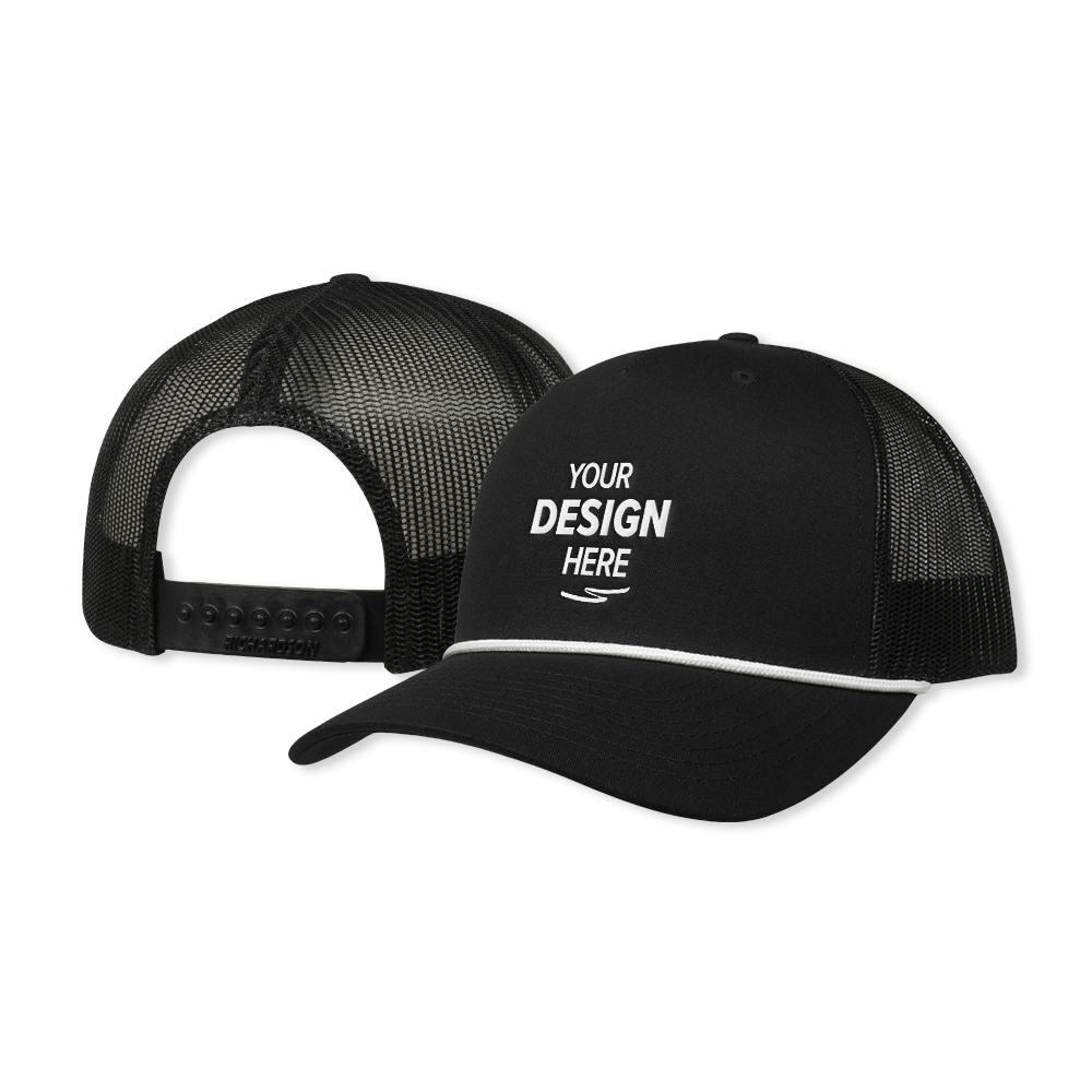 Chill out with the Richardson Five-Panel Trucker with Rope Cap. This hat's got your back, no matter what you're up to. The comfy cotton-polyester blend keeps your head happy, and the airy mesh back lets your hair breathe. The simple addition of the rope detail adds some contrast and style, with a snapback closure for a perfect fit.