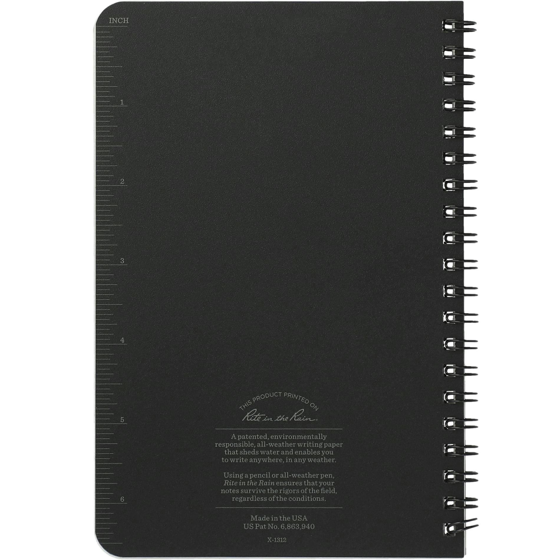 The 4.6” x 7” Rite in the Rain Side Spiral Notebook is fully prepared for any challenge mother nature throws at it. This notebook features a hard polydura cover to protect your notes from scratches and stains and impact-resistant Wire-O binding that will keep its shape. Includes 32 sheets of white lined paper.