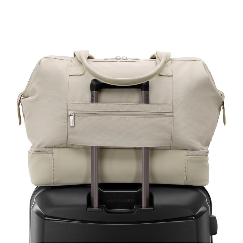 Pack like a pro with the large main zippered opening that makes loading up a breeze! Inside, you'll find a handy laptop compartment for devices up to 14 inches, plus zippered and slip pockets to keep everything organized. The clever Drop Bottom construction is perfect for shoes or clothes, keeping them separate from your main items, while the exterior front pocket holds your smaller accessories. With a smart sleeve for easy trolley pass-through and an adjustable, detachable padded shoulder strap, this PVC-free bag is built for comfort and convenience on the go!