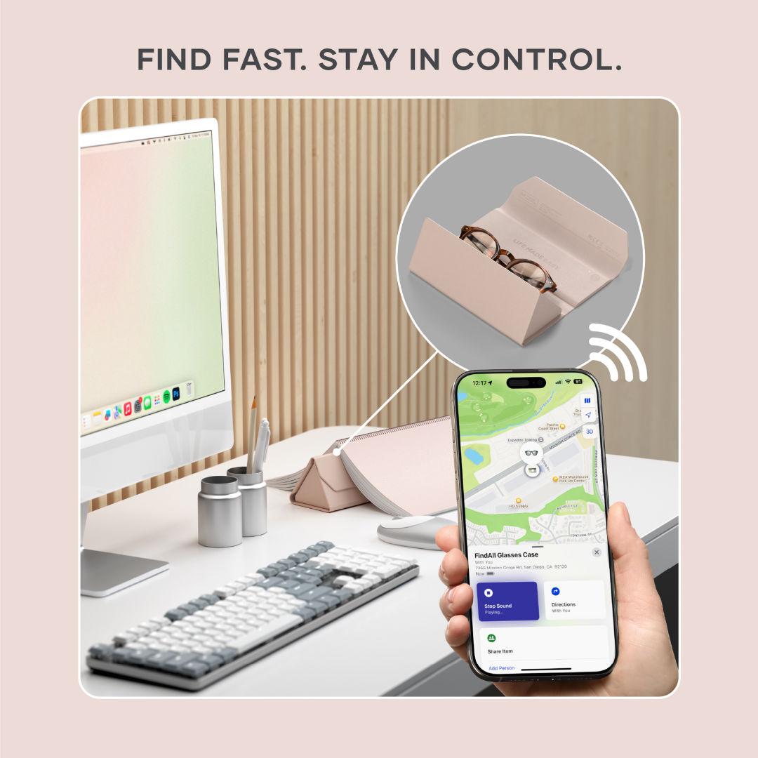Protect and track your eyewear with the Satechi FindAll™ Glasses Case, a smart solution that blends premium protection with built-in peace of mind. Designed with Apple Find My integration, it helps you locate misplaced glasses in seconds using step-by-step directions or an audible chime from your Apple device. Crafted for everyday use, this sleek case fits most glasses, sunglasses, and XR/AR devices while delivering reliable tracking through Bluetooth 5.4 LE. A wirelessly rechargeable 150mAh battery ensures long-lasting performance, making it ideal for travel, work, and daily carry. Durable, modern, and thoughtfully designed, it’s the perfect way to keep your eyewear safe and easy to find. (Not compatible with Android devices.)