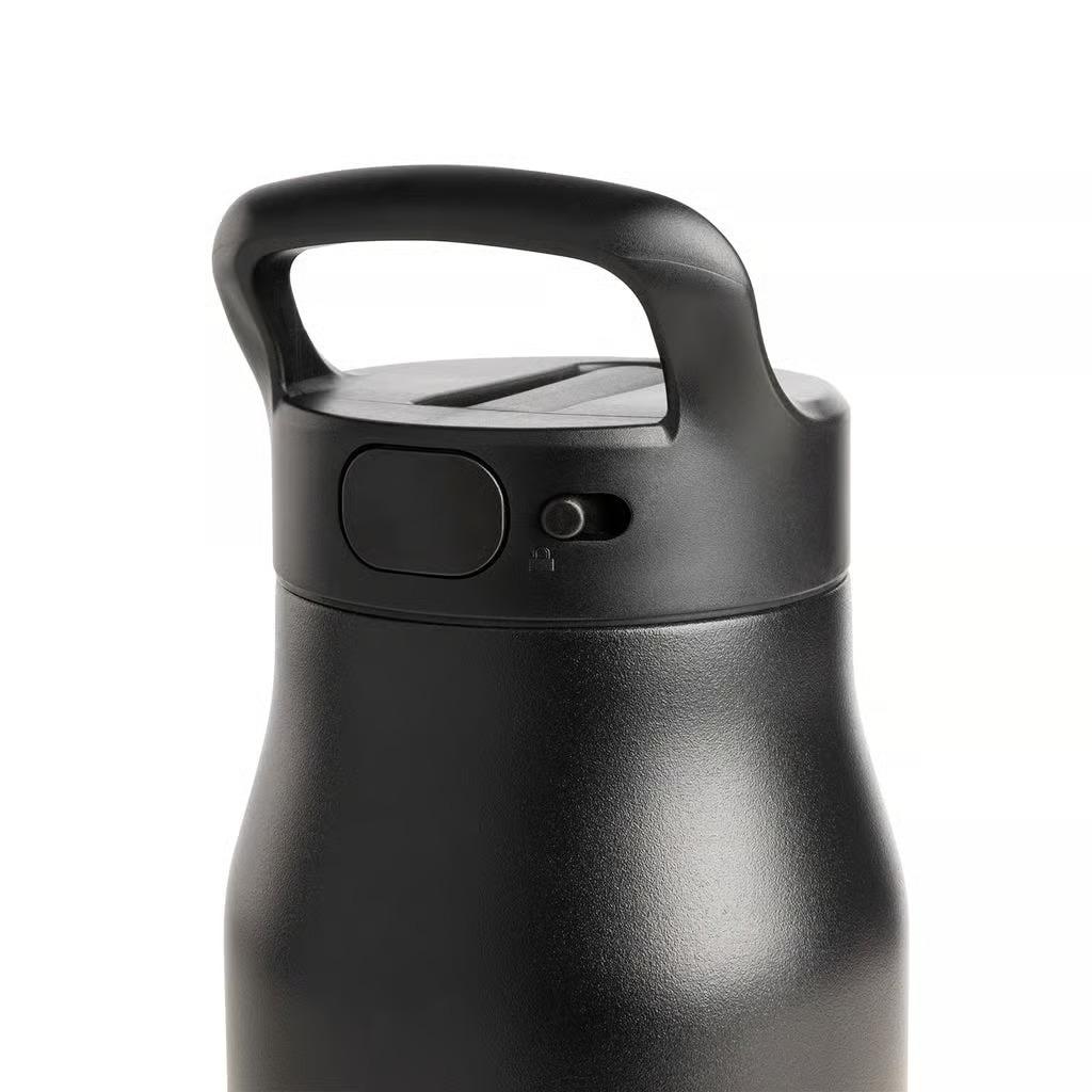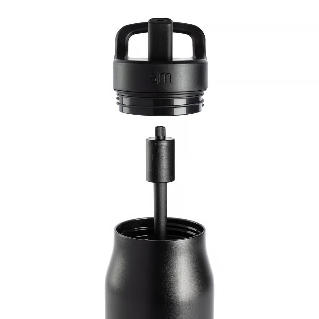 Simple Modern Mesa 34 oz insulated water bottle built for all-day hydration. The push-button straw lid locks for 100% leak-proof travel, while double-wall vacuum insulation keeps drinks at the right temperature for hours. A ceramic-lined interior preserves true flavor, and a silicone base adds grip and bump protection—perfect for the gym, commute, office, or outdoor adventures. Made from durable 18/8 stainless steel with BPA-free lid and removable straw, this stainless steel water bottle is top-rack dishwasher safe. Tough, flavor-friendly, and portable—just avoid carbonated drinks.