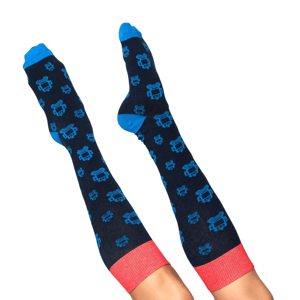 Custom Knee High Socks — soft, durable, and made to showcase your logo or colors. Crafted from a breathable 75% cotton / 21% nylon / 4% spandex blend, these unisex knee highs deliver all-day comfort and stretch (one size fits most: women 6–12 / men 6–11). Knitted—not printed—your design becomes part of the sock for long-lasting wear, making them ideal for team uniforms, game-day gear, corporate gifts, retail collections, travel, or outdoor adventures.