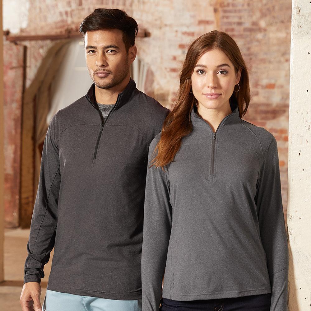 The Spyder Women's Spyre Quarter-Zip is made from a polyester and spandex blend with four-way stretch for a cotton-like feel and UV protection. It features a stand-up collar with a reverse coil zipper, and debossed 'Spyder' neck tape. The quarter-zip includes back vents with reflective tape for visibility, side vents for mobility and ventilation, and cuffs with thumb holes. The iconic rubberized Spyder bug logo is positioned at the back vent, with the Spyder wordmark on the right side. Create your very own by adding your artwork or design!