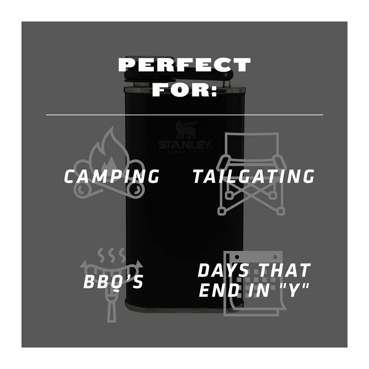 Stanley 8 oz. Easy Fill Wide Mouth Flask — retro style with modern durability. Slim, pocket-ready silhouette slips into bags, coat pockets, or backpacks for travel, outdoor adventures, tailgates, and events. The wide-mouth opening makes refills fast (no funnel), and the twist-on, leakproof cap keeps contents secure. Made from 18/8 stainless steel and BPA-free for long-lasting use, backed by Stanley’s Built For Life™ lifetime warranty. Hand wash only. Note: lead times may vary due to Stanley product demand.