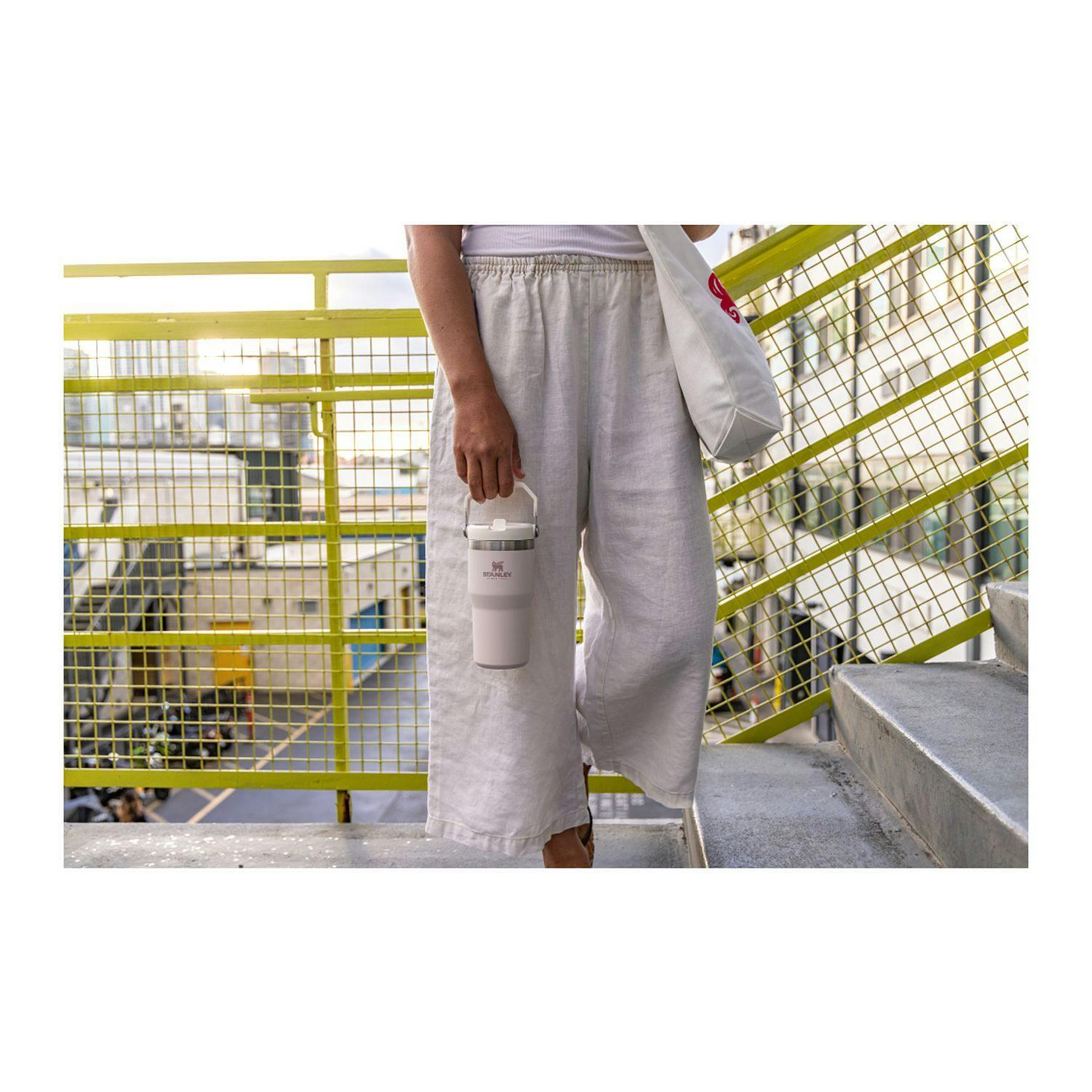 Hit the road to adventure or a high-intensity spin class at home. This tumbler ensures that you always have crisp, cold hydration in hand. The ergonomic shape and built-in flip straw mean you can sip easily and effortlessly. It snaps tight to stay fully leakproof. Stanley’s double-wall vacuum insulation keeps your drinks icy cold, and a rotating handle makes it easy to take anywhere. To help you live a sustainable lifestyle, the IceFlow Tumbler is made in part from recycled plastics sourced from discarded fishing nets, sparing our waters of plastic waste. Hand Wash Only.