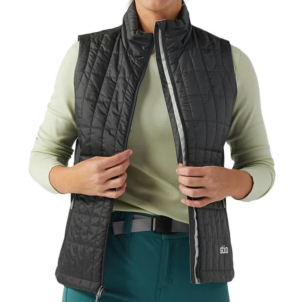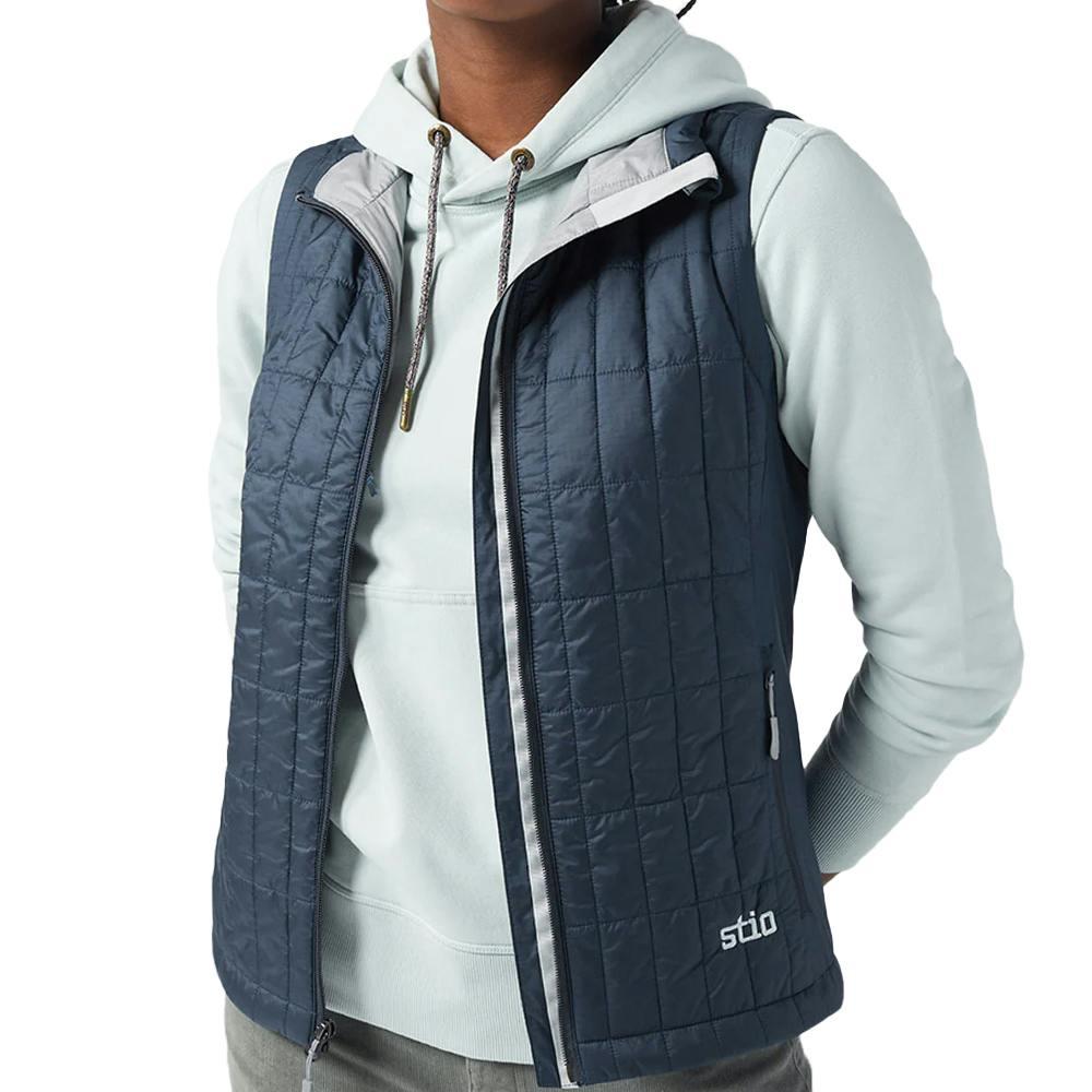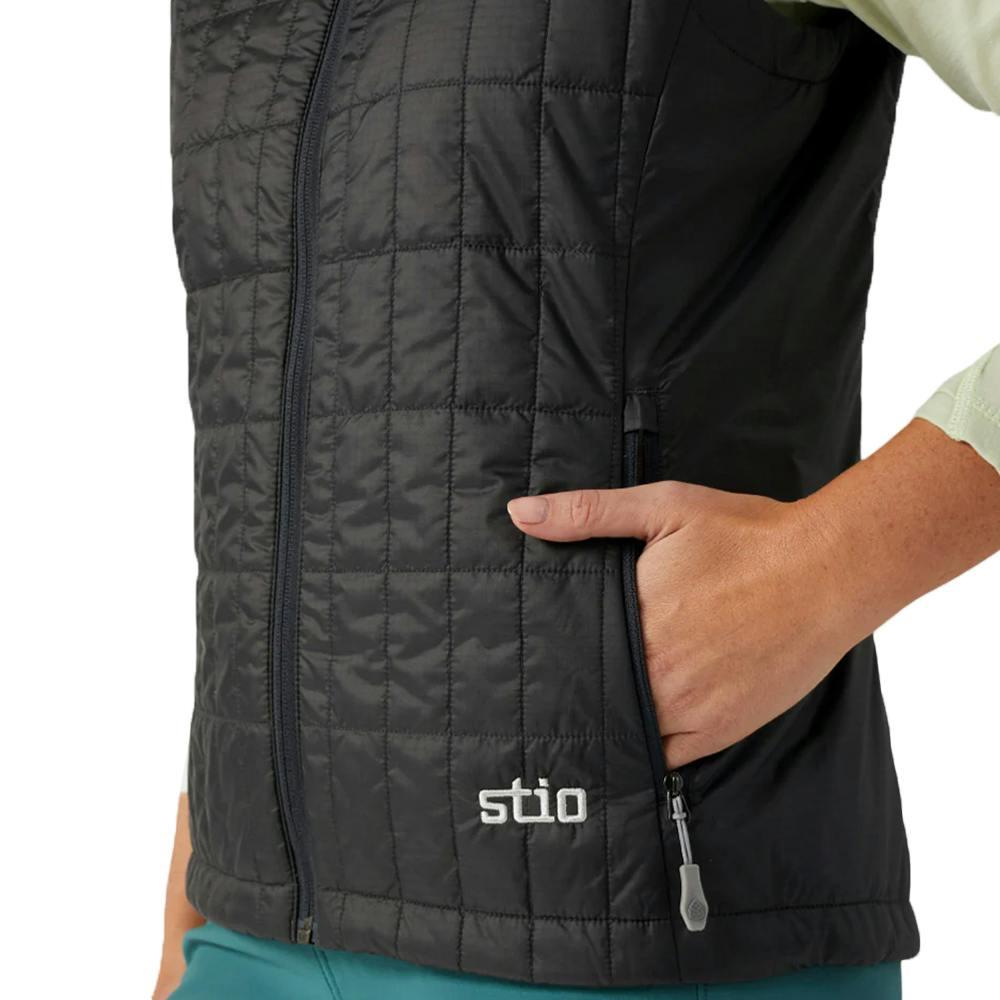 The Women's Stio Azura Insulated Vest is a sustainable choice, featuring a Recycled Aerlon™ Denier Double Ripstop outer and lining made from recycled Nylon. The insulation is provided by PrimaLoft® Gold ECO™ Short Staple Synthetic Insulation, offering efficient warmth. This vest boasts a custom quilt pattern, zippered handwarmer and chest pockets, and YKK® reverse coil zippers with custom Stio® silicone puller. With an adjustable storm-sealing hem, it combines functionality and eco-conscious design, complemented by embroidered Stio® and Pinecone logos for a distinctive touch.