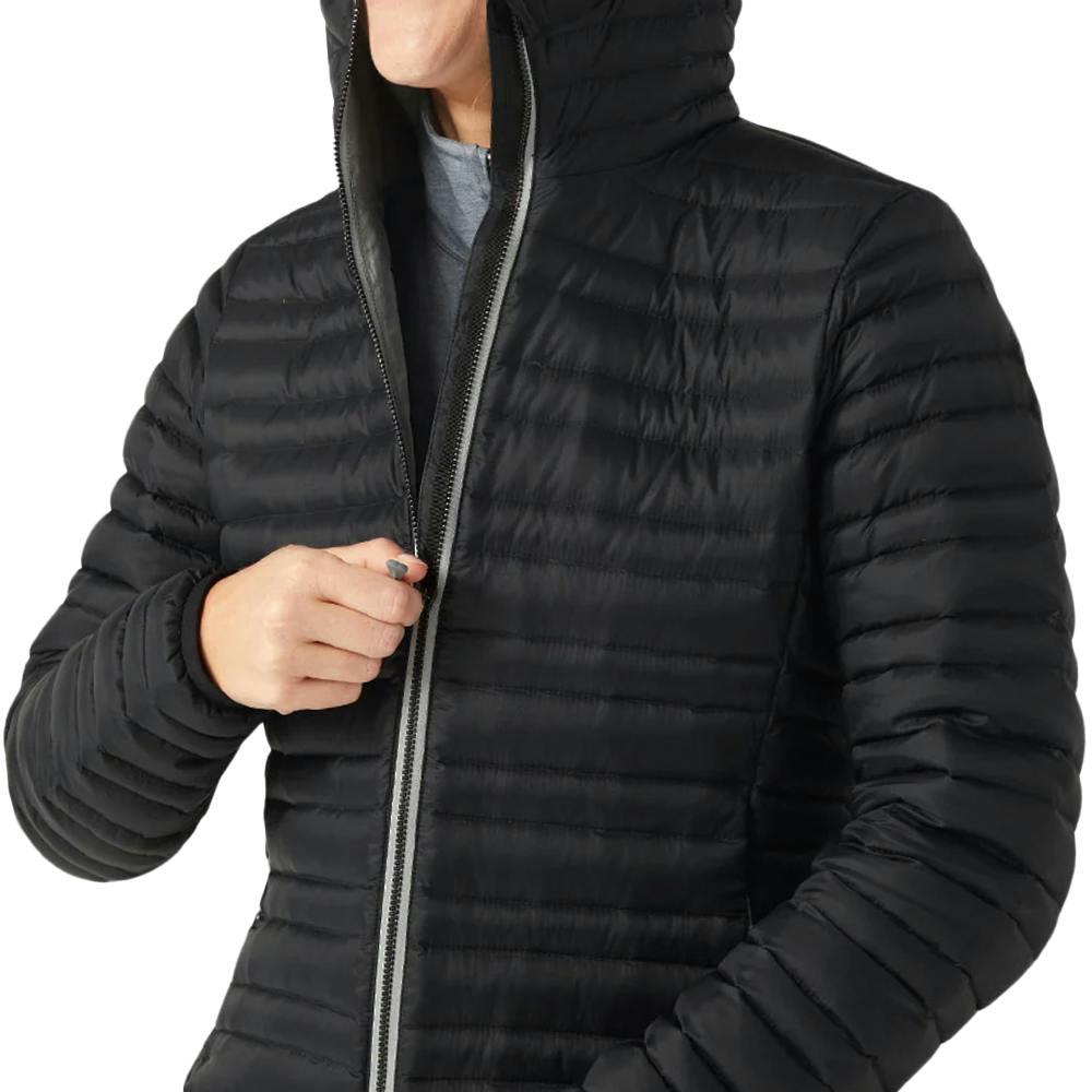 The Stio Women's Pinion Down Hooded Jacket is a pinnacle of responsible and sustainable performance. Certified by the Responsible Down Standard, it features AlliedFeather™ HyperDRY™ Water Repellent Down, offering ultralight warmth with White Goose Down. The regular fit, fixed hood with halo adjust, and YKK® Vislon® zipper ensure versatile and low-profile protection. Additional highlights include a custom Stio® silicone puller, an interior security pocket that doubles as a stuff pocket, and included embroidered for a touch of style.
