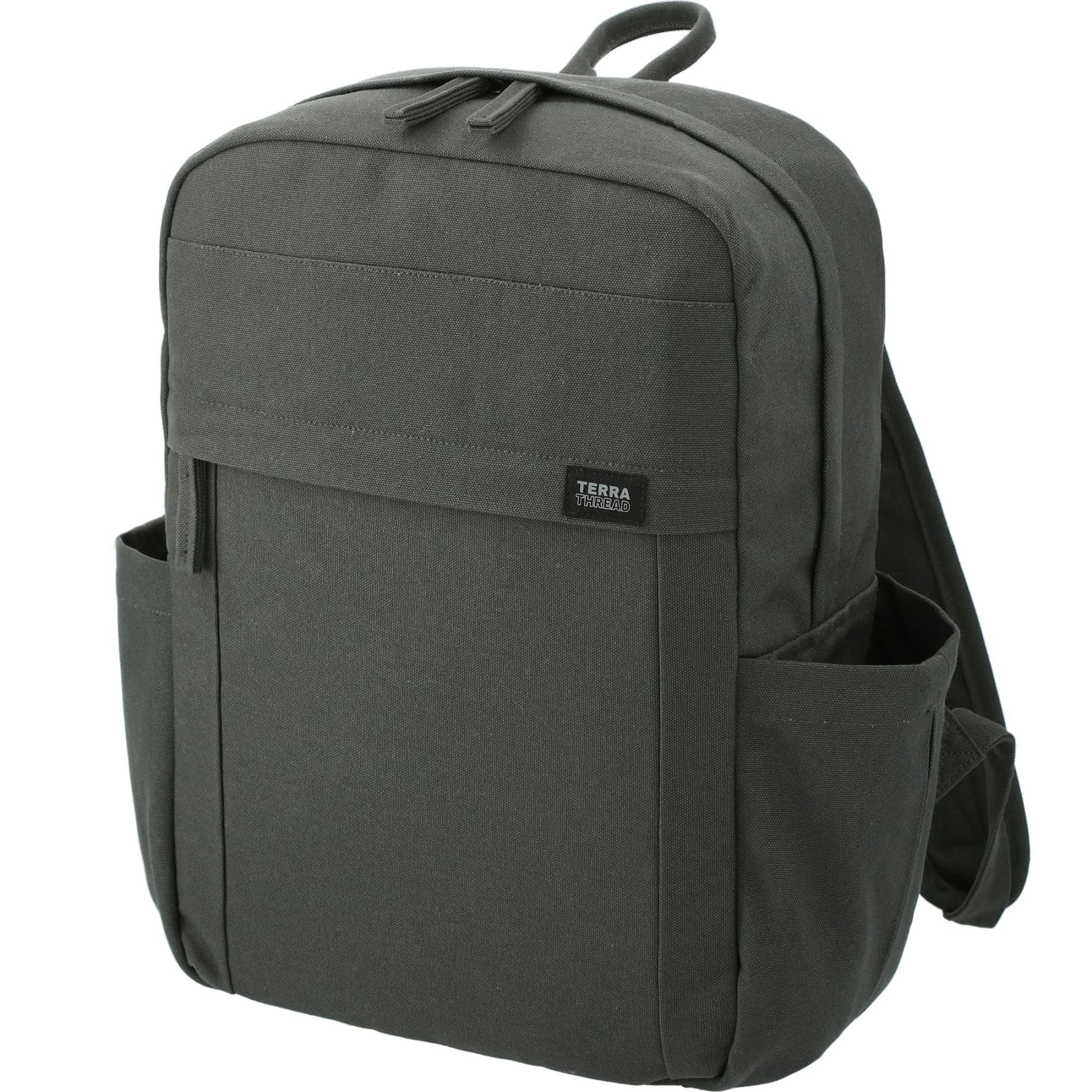 Sustainable, tough, and ethically made — the Terra Thread Fairtrade Earth 15" Computer Backpack is your everyday carry for college, commuting, travel, and light hikes. Built from heavy-duty 14 oz certified organic cotton canvas in a Fair Trade Certified™ factory, this eco-friendly backpack protects a 15" laptop in a simple padded sleeve, keeps small items organized with an interior pocket, and puts water bottles and essentials within easy reach via two side sleeves and a large zippered front pocket. Comfortable padded, adjustable shoulder straps and a secure zip closure make it reliable on campus, at work, or on weekend adventures. Buy with purpose: each purchase helps support Feeding America’s work to provide meals to kids and families in need. Ideal as a sustainable laptop backpack, commuter pack, or travel daypack.