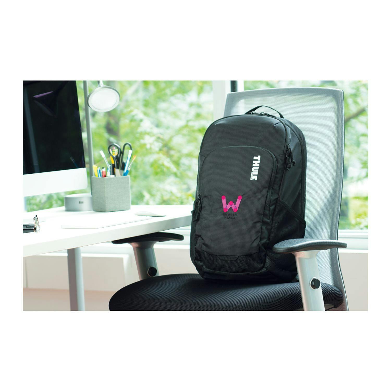 Thule Achiever 15" Computer Backpack. The Thule Achiever 15” Computer Backpack is a streamlined 24L backpack with storage for campus essentials, including a 15” laptop and 10.1” tablet. Protect a 15” MacBook /15.6” PC in the padded sleeve with SafeEdge construction and store a 10.1” tablet in a separate protective sleep. Protect your phone, sunglasses, or other small valuables in the external, soft-lined, padded pocket. Keep your small electronics and accessories organized in the quick access pocket with zippered compartment, mesh pocket, pen storage, and key leash. Keep your water bottle accessible in the side mesh pockets. You can carry this bag in comfort with the padded backpannel with airflow channels or easily grab it and go with the webbing haul handle.