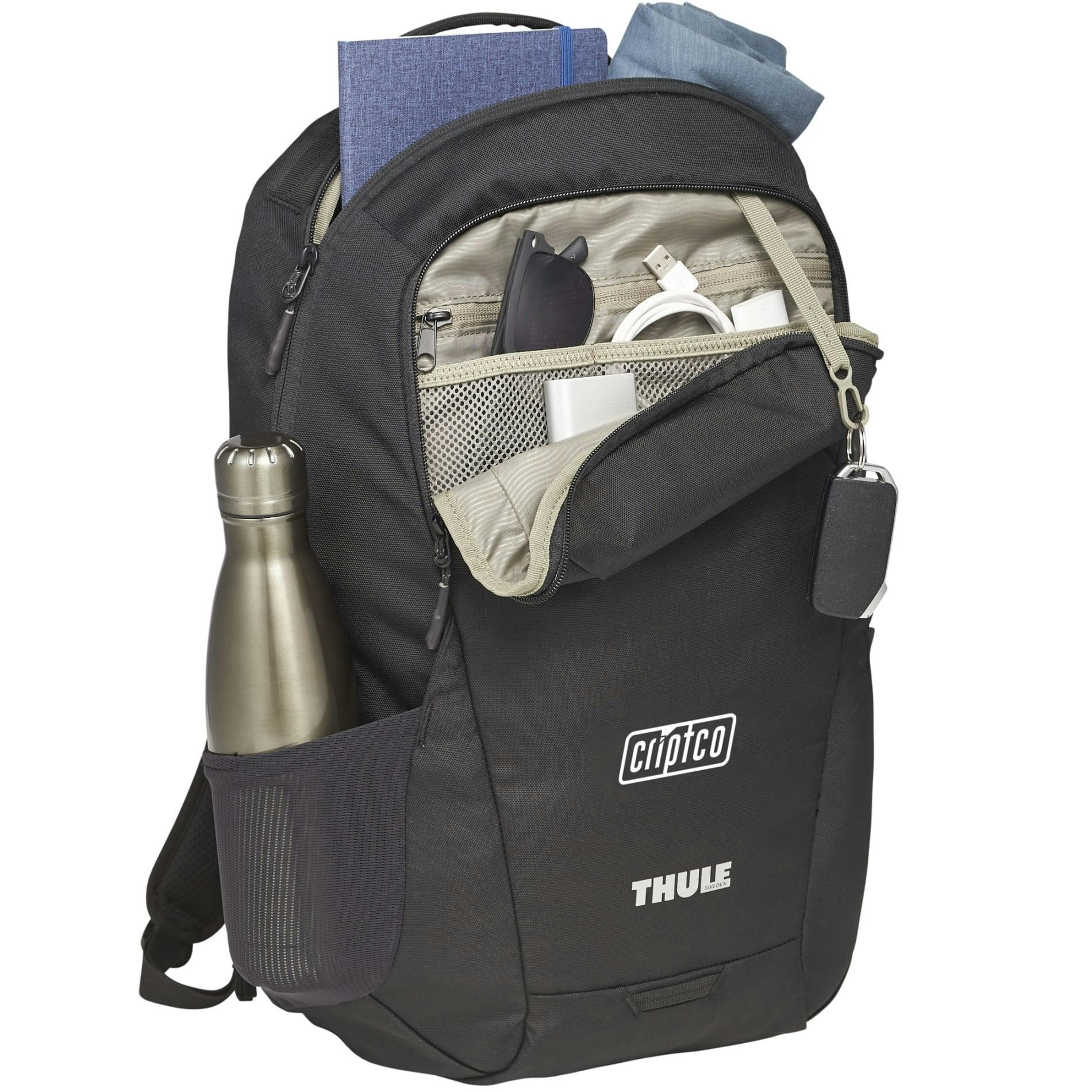 The Thule Lumion 15" Computer Backpack 21L is made from recycled polyester and exclusively designed for PCNA. This backpack includes a front zippered pocket for organization as well as a larger zippered compartment featuring a padded, 15" laptop sleeve. The top carry handle allows you to grab and go while the padded back panel provides lower lumbar support. A side water bottle pocket and daisy chain webbing are bonus features of this backpack.