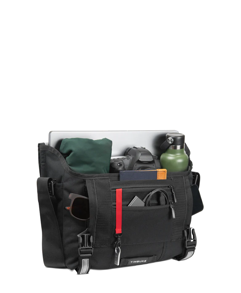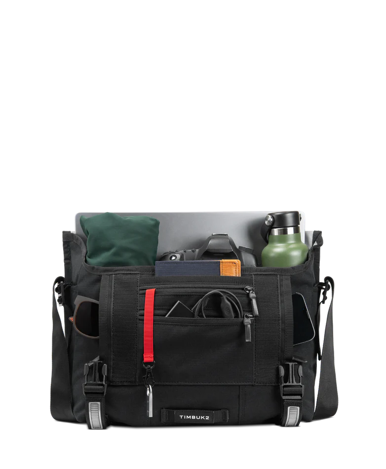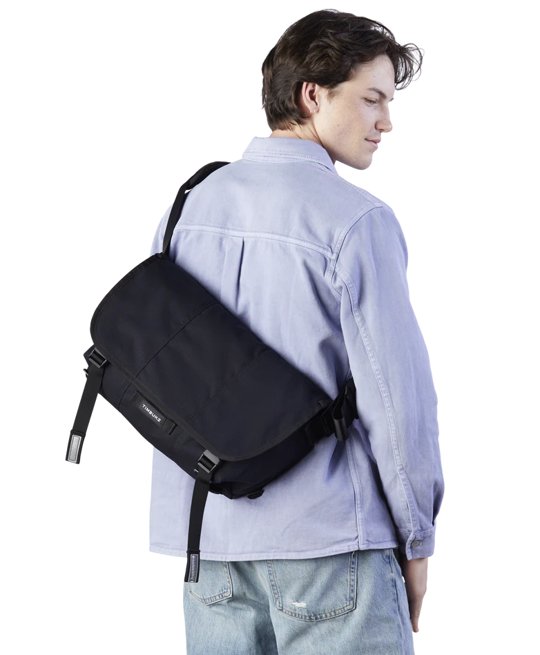 Designed for everyday performance, the Timbuk2 Flight Classic Messenger Bag – Small delivers rugged durability without the bulk. Made from 300D Eco Ripstop fabric crafted with 100% recycled polyester, this lightweight messenger resists water and tearing, while a weatherproof exterior and waterproof TPU liner help protect your gear in changing conditions. Comfort and convenience come standard with an OrthoLite® foam shoulder pad, a quick-adjust aircraft-grade aluminum buckle, and a switchable shoulder strap for right- or left-handed carry. A dual-side vertical zip pocket keeps essentials within easy reach, while the spacious interior, dual water bottle pockets, and tech storage for up to a 14" laptop make it ideal for commuting, travel, work, and daily carry. Backed by a lifetime warranty, it’s built to go wherever your day takes you.