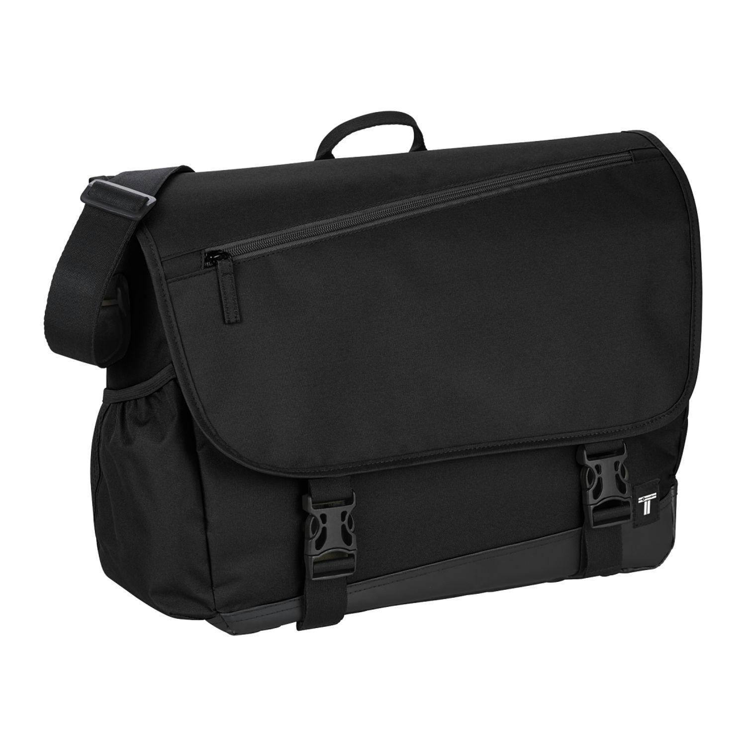 Tranzip - navigate your way through the city with style. This messenger is perfect for your daily commute. Easy-clean wipeable bottom. Front flap with zippered front pocket for quick access items. Main compartment with pocket for a tablet and a laptop up to 15.6". Side water bottle pocket. Adjustable shoulder strap. Trolley sleeve.