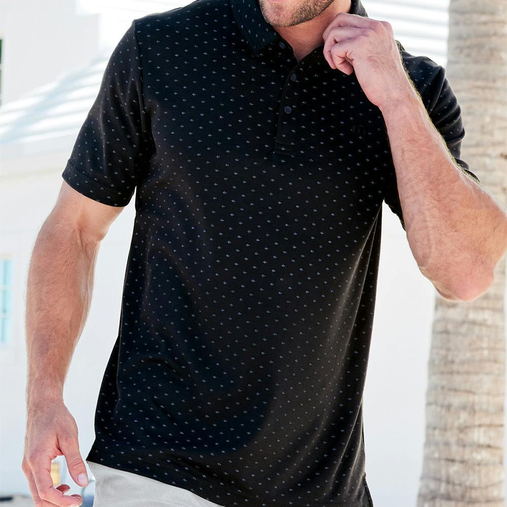 An all-over print makes this TravisMathew Oceanside Geo Polo worthy of a second glance. The wrinkle-resistance material, 4-way stretch, and quick-drying technology provide unrivaled performance for this polo. Add a logo or design and let this polo do the rest.