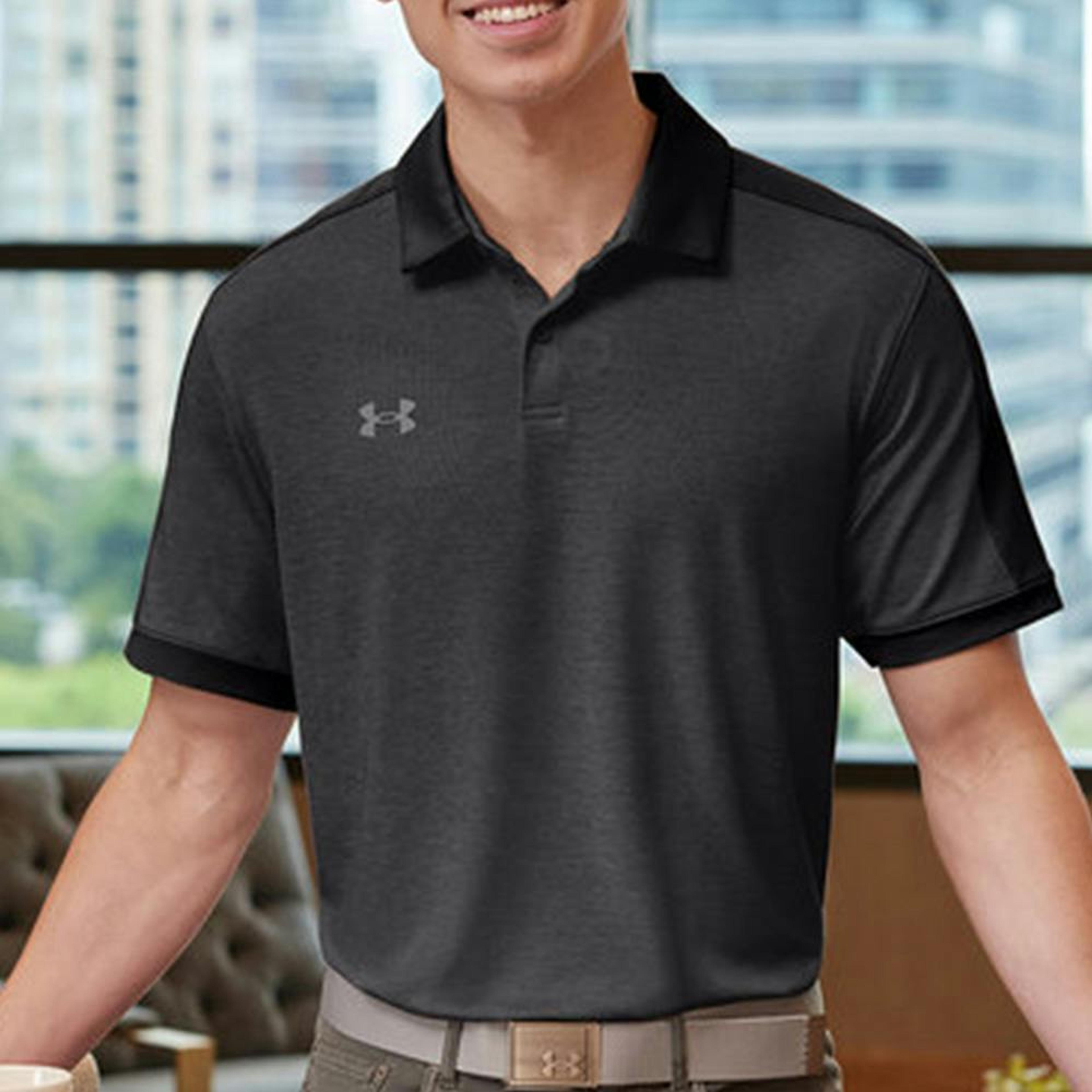 This Under Armour Trophy Level Polo is made of a moisture-wicking, anti-odor polo shirt with a one-button placket and four-way stretch material. It's perfect to keep you cool and dry all while having great style with a one-button placket and logo on the right chest-- ready for your logo on the left.