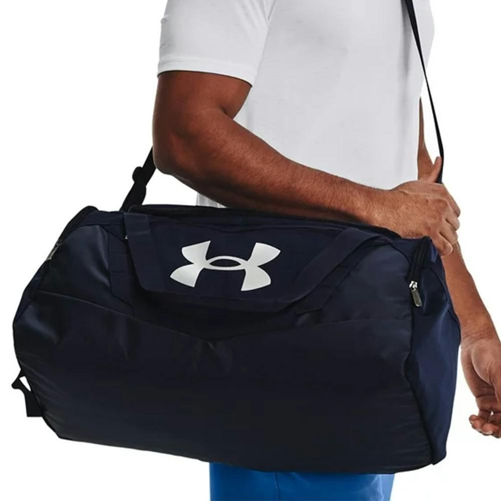 This Under Armour Undeniable SM Duffle Bag is designed for those who demand high performance. Crafted from polyester, it features UA Storm technology, providing a highly water-resistant finish to protect your belongings. The bag boasts tough, abrasion-resistant bottom and side panels for added durability. It offers practical storage with two large front zippered pockets, a large vented pocket for laundry or shoes, and internal slip pockets. The adjustable shoulder strap and padded top grab handle ensure comfortable carrying. Finished with an embroidered UA label on the side and a heat-sealed UA logo on the front. Customize this bag with your artwork or logo.