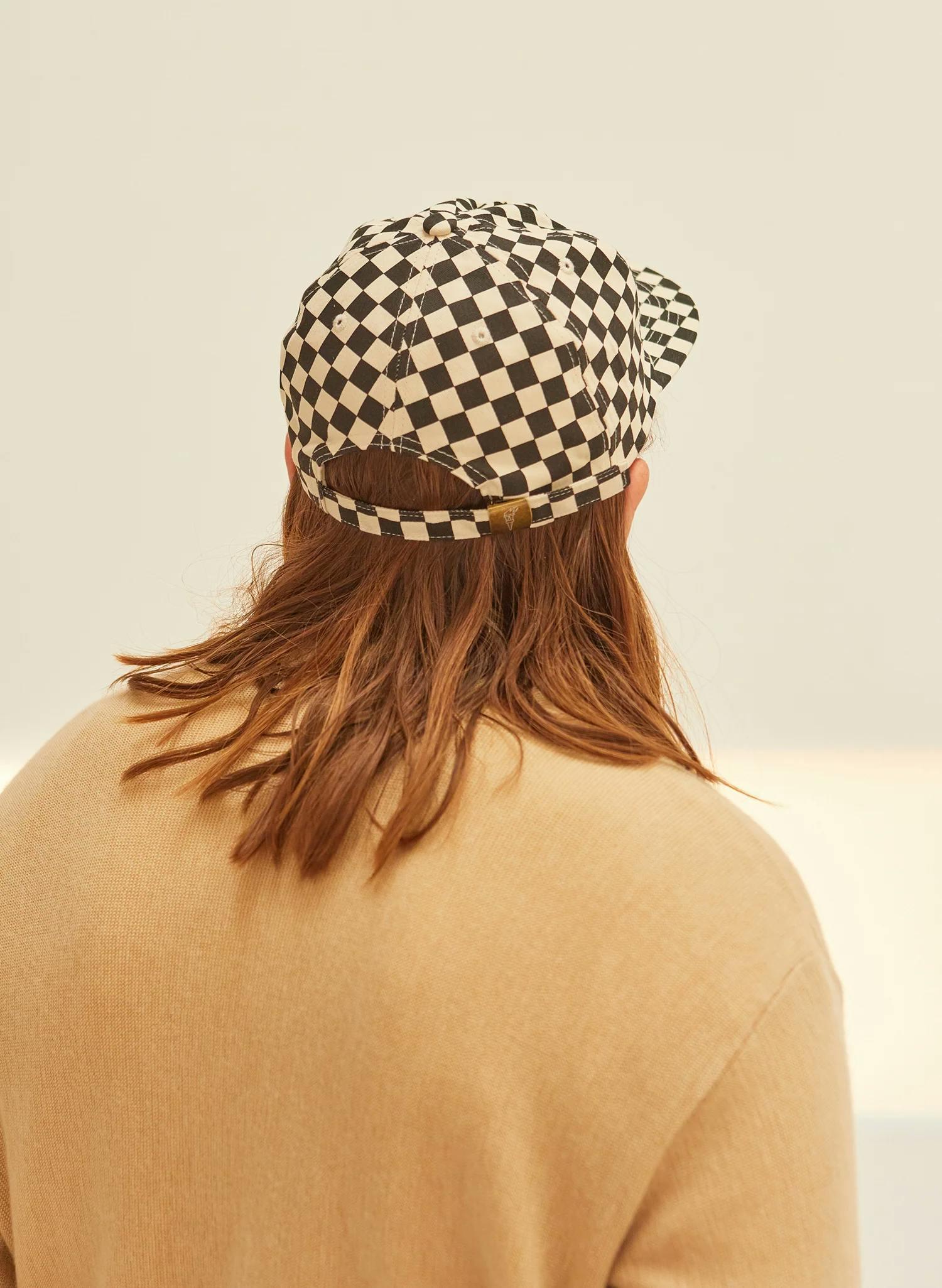 Our Checkerboard 'Field Trip™ is derived from a nostalgia for vintage workwear hats. The timeless hats are made of soft, brushed cotton twill fabric and feature a fabric strap with brass metal clasp.