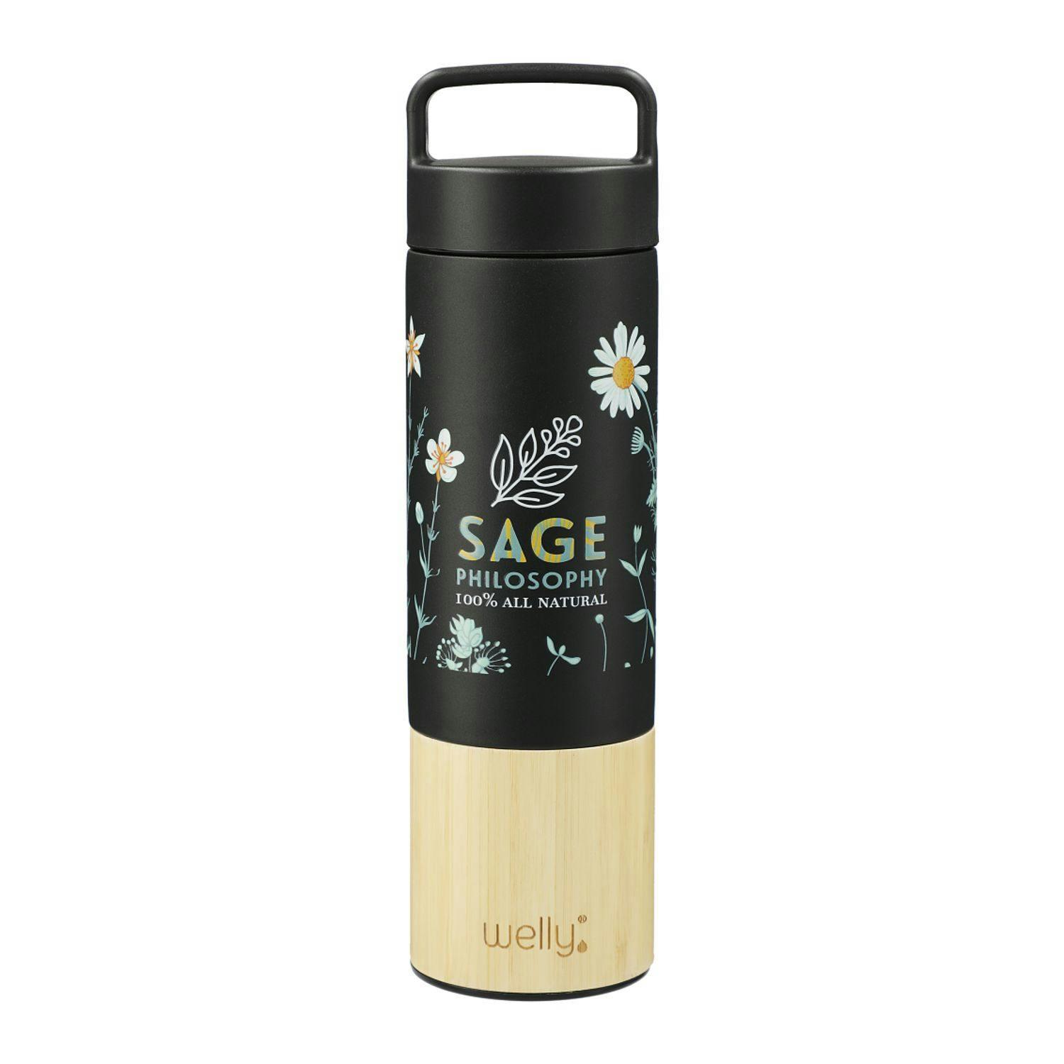 The Welly® Copper Vacuum Insulated Bottle features durable, double-wall stainless steel vacuum construction with copper insulation, which allows your beverage to stay cold for 48 hours and hot for at least 12 hours. The construction also prevents condensation on the outside of the bottle. Removable stainless steel infuser included. This water bottle comes complete with on-trend, durable powder coating and the natural bamboo wrap. It features a screw-on lid and a wide opening for comfortable filling and pouring. Perfect for ice cubes and fits most standard car cup holders. Due to the nature of bamboo and powder-coated materials, there might be a slight difference on laser-engraved logos. No two pieces are alike, which makes each one unique for you. 18oz. And it’s more than an awesome bottle. Welly contributes 1% of sales toward construction of wells in areas without clean water.