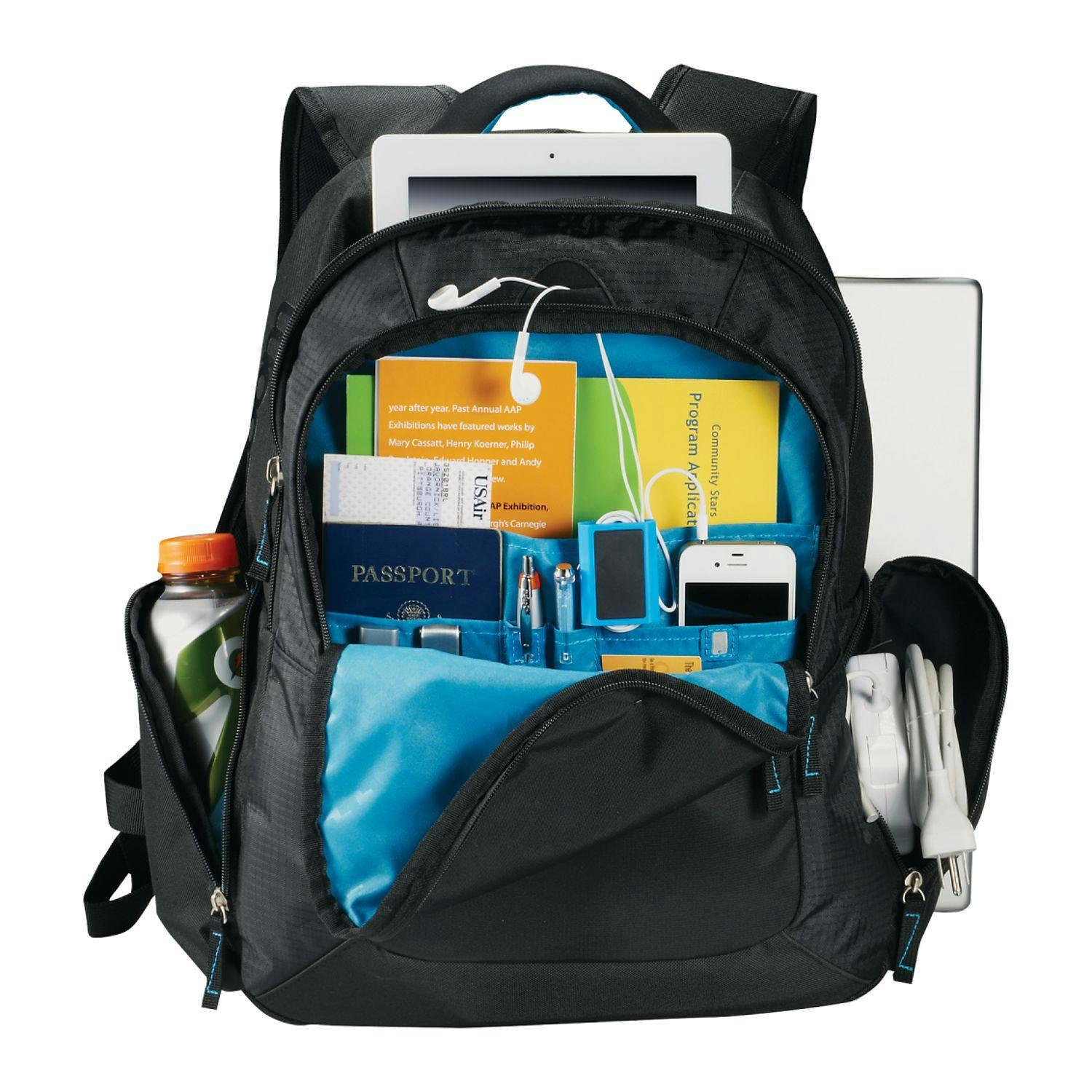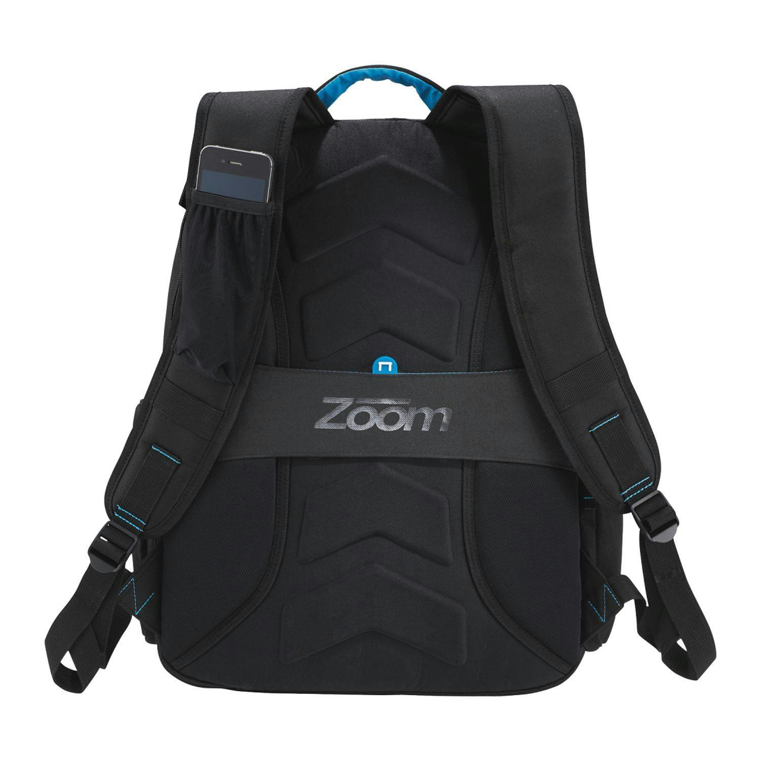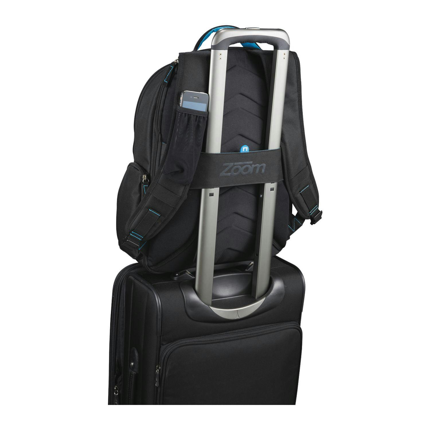 The Zoom® DayTripper 15" Computer Backpack is a lightweight daypack that includes a dedicated computer pocket that keeps laptops up to 15 inches safe and secure with side entry access. Open main compartment includes a dedicated zippered nylex-lined padded iPad pocket. A zippered top pocket has an organization panel and earbud port access while a zippered lower front pocket provides additional secure storage. Includes top zip lined valuables pocket that's perfect for sunglasses. Two side zippered pockets. Neoprene handle. Molded EVA back keeps the bag lightweight and allows ventilation down your back along with padded straps and smart phone holder. Back panel is designed to slip over trolley handles. Signature Zoom lining and hardware.
