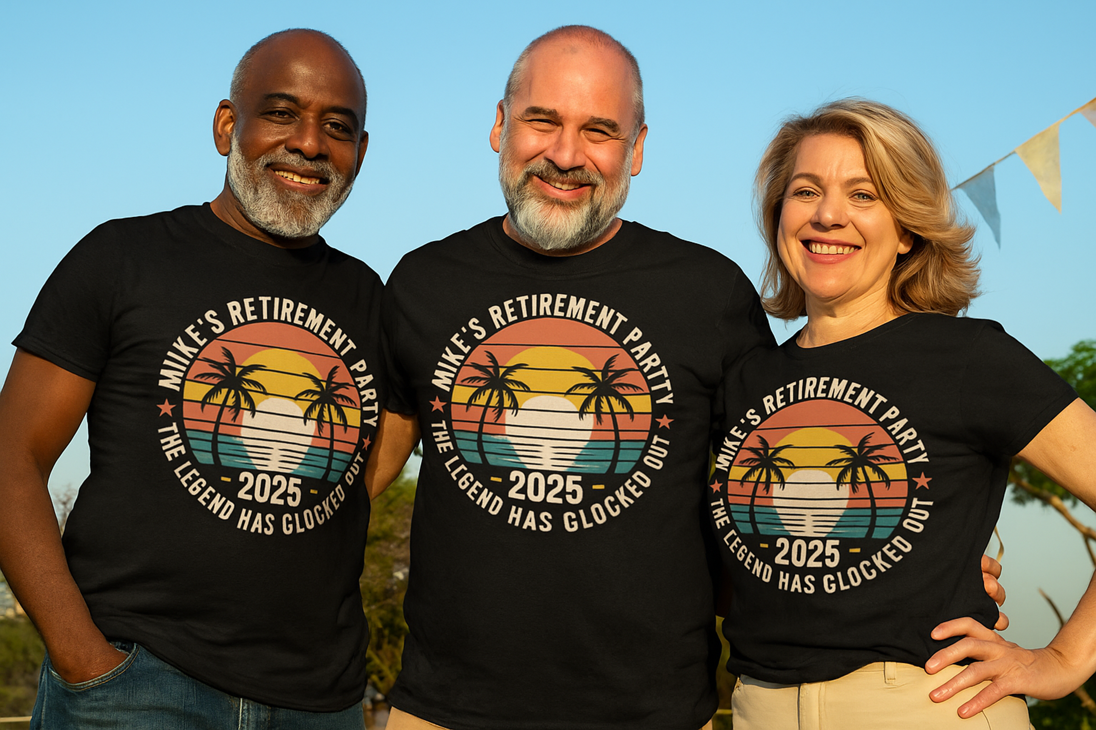 Our personalized retirement shirts are soft, durable, and printed to last — perfect for parties, gifts, or everyday wear.