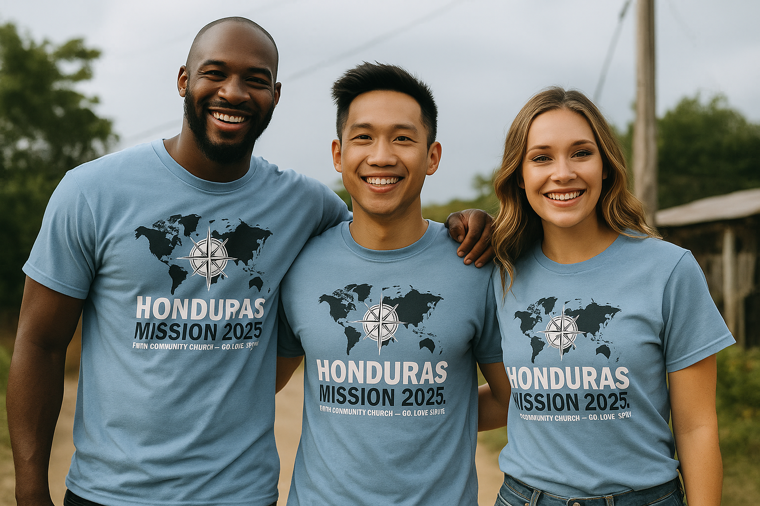 Soft, durable, and fully customizable, our personalized mission trip shirts are made for long days of outreach, travel, and fellowship.