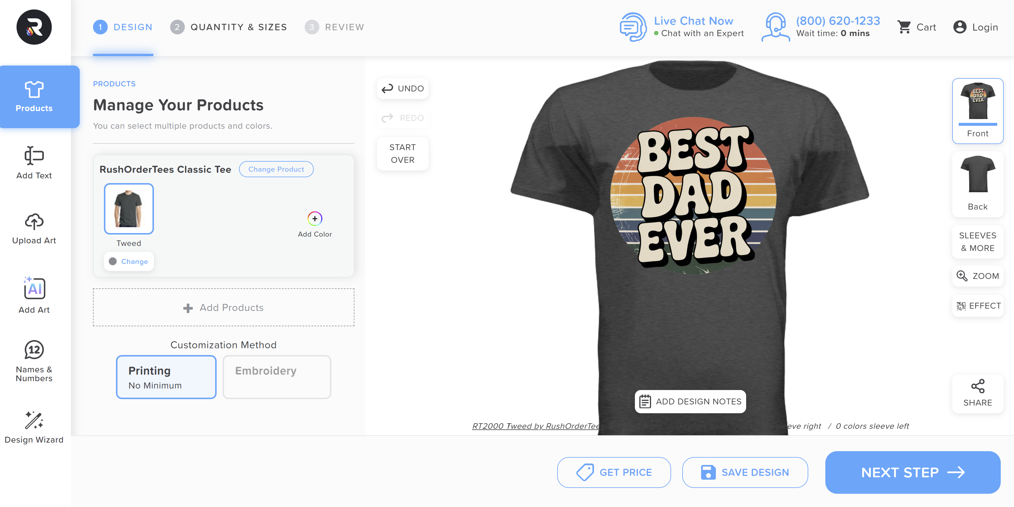 I ordered some shirts for our company for my husband for Father’s Day. He absolutely loves these shirts. They are made of thick quality and the graphics were spot on. The shirts were the Gildan’s And after a wash, the color did not fade! We will be ordering more! The more you buy, the cheaper they are! Great job Rush Order Tees