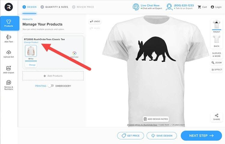Products can be easily changed in the Design Studio. Just click the "Change Product" link highlighted below and select a different product from our catalog.