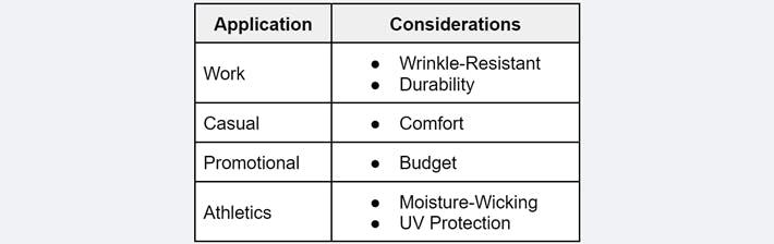 Thinking about how your custom apparel will be used can help guide the decision surrounding the garment to be selected. Consider the following situations for each application: