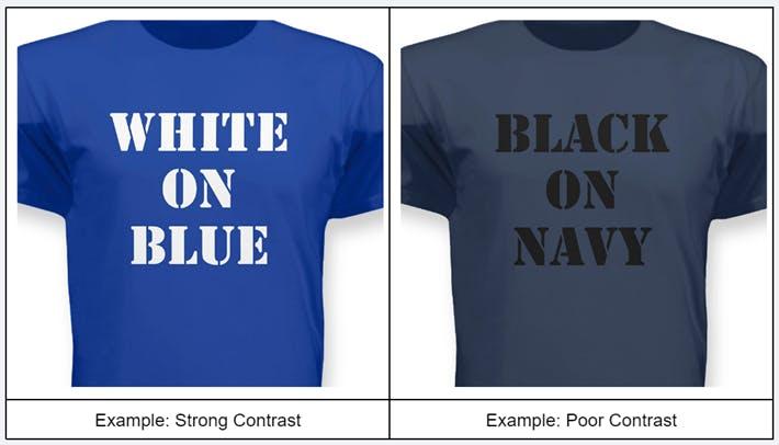 If you want others to see and understand your t-shirt design, the colors used must have adequate contrast. Contrast is the ability to clearly see the contents of a design by using different colors, so they need to be sufficiently different.